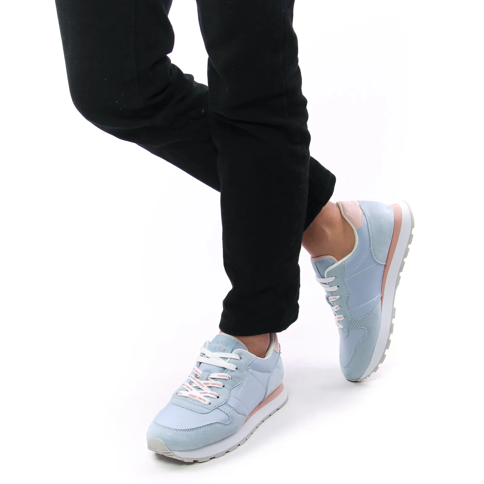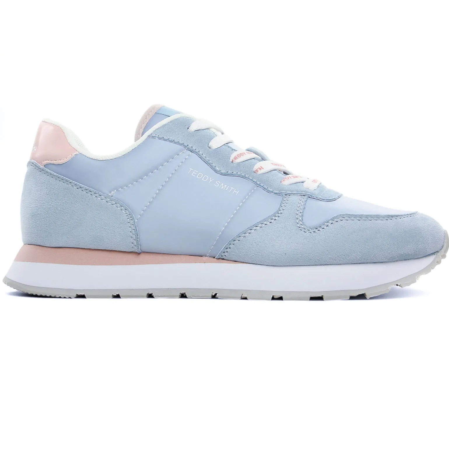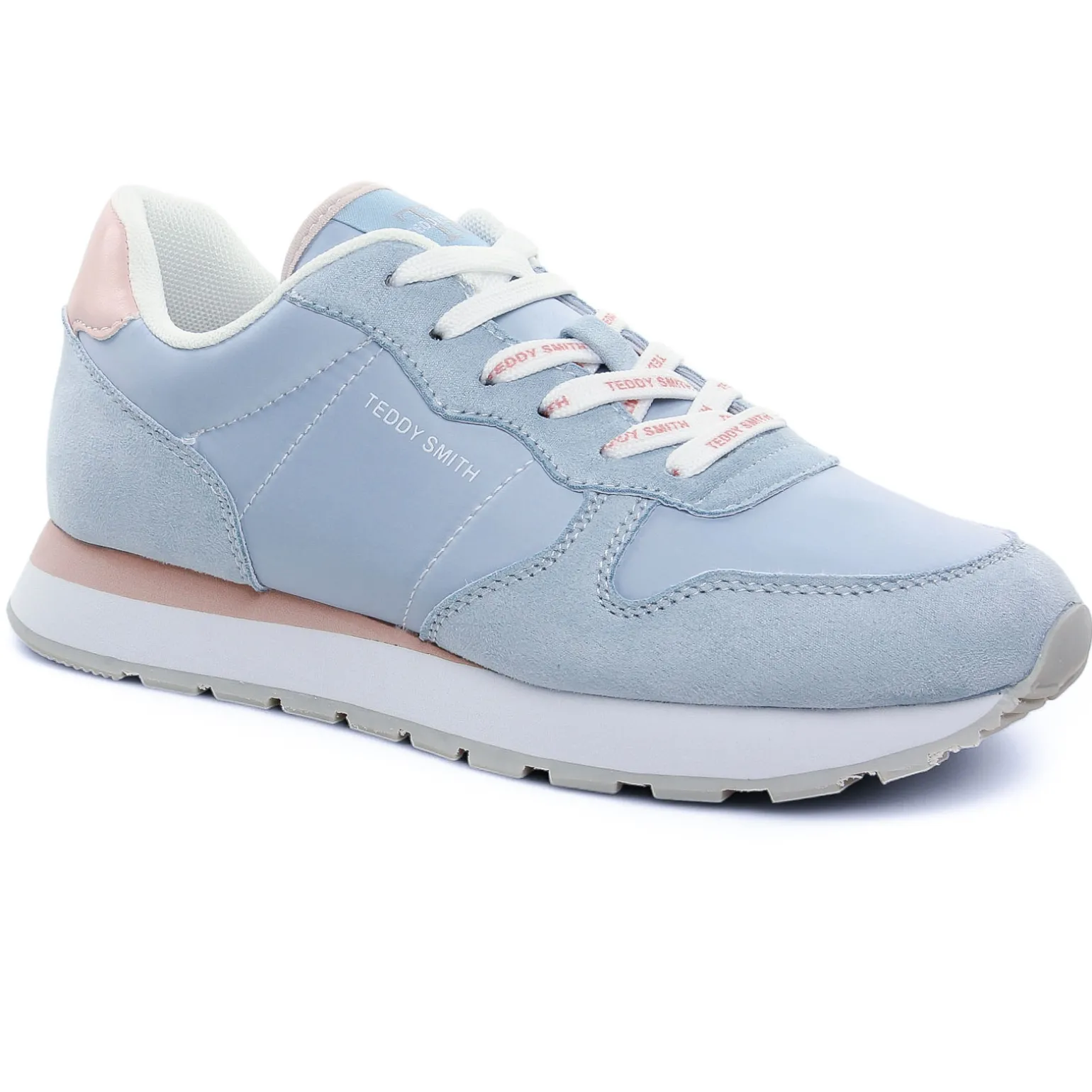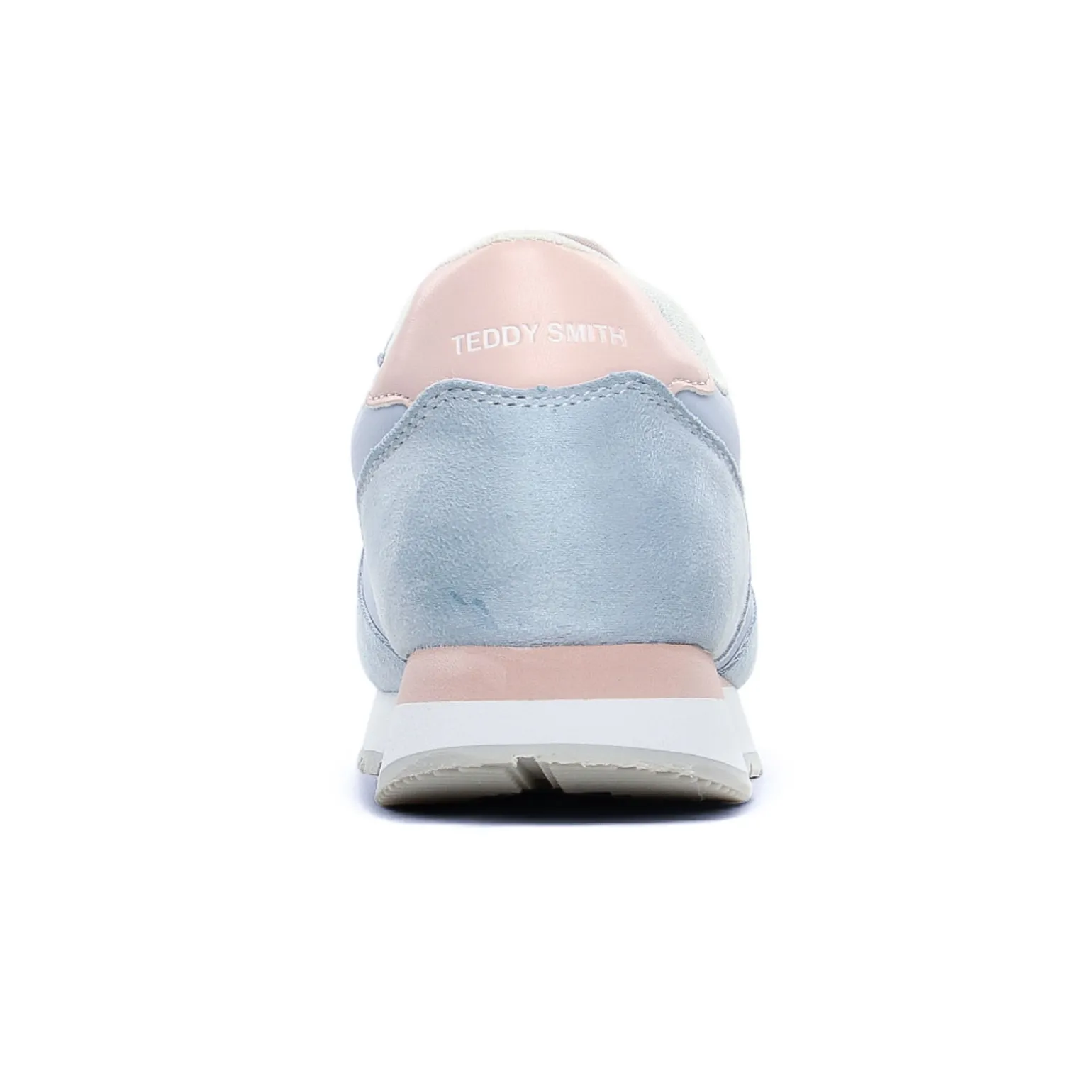 Baskets Mode de la marque Teddy Smith de couleur bleu rose. Baskets basses en toile, disponibles dans diverses couleurs : vert d’eau, bleu ciel et rose, bout de la sneaker en suédine effets velours, des touches flashy tendances qui égayeront votre style sporty chic ! 2 lacets au choix et une semelle antiglisse de couleur et crantée, une première amovible avec un amorti pour le confort, nouvelle collection femme de chez Teddy Smith