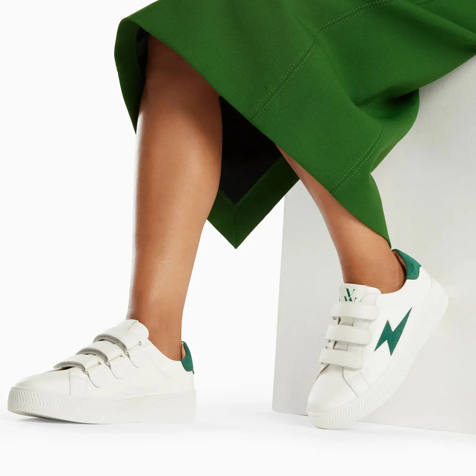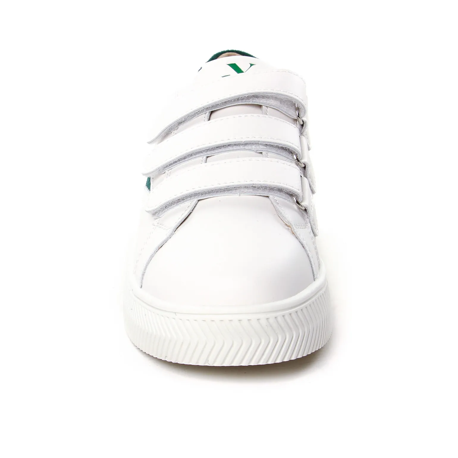 Baskets Mode de la marque Vanessa Wu de couleur blanc vert. Un best seller Vanessa Wu, la baskets Marilou avec un insert velours, ou pailleté pour la version or, sur le haut du contrefort et sur l’éclair caractéristique de la marque tendance du moment, baskets blanches à scratchs blancs avec une semelle plateforme blanche aussi et très légère : un must have pour cette mi-saison !