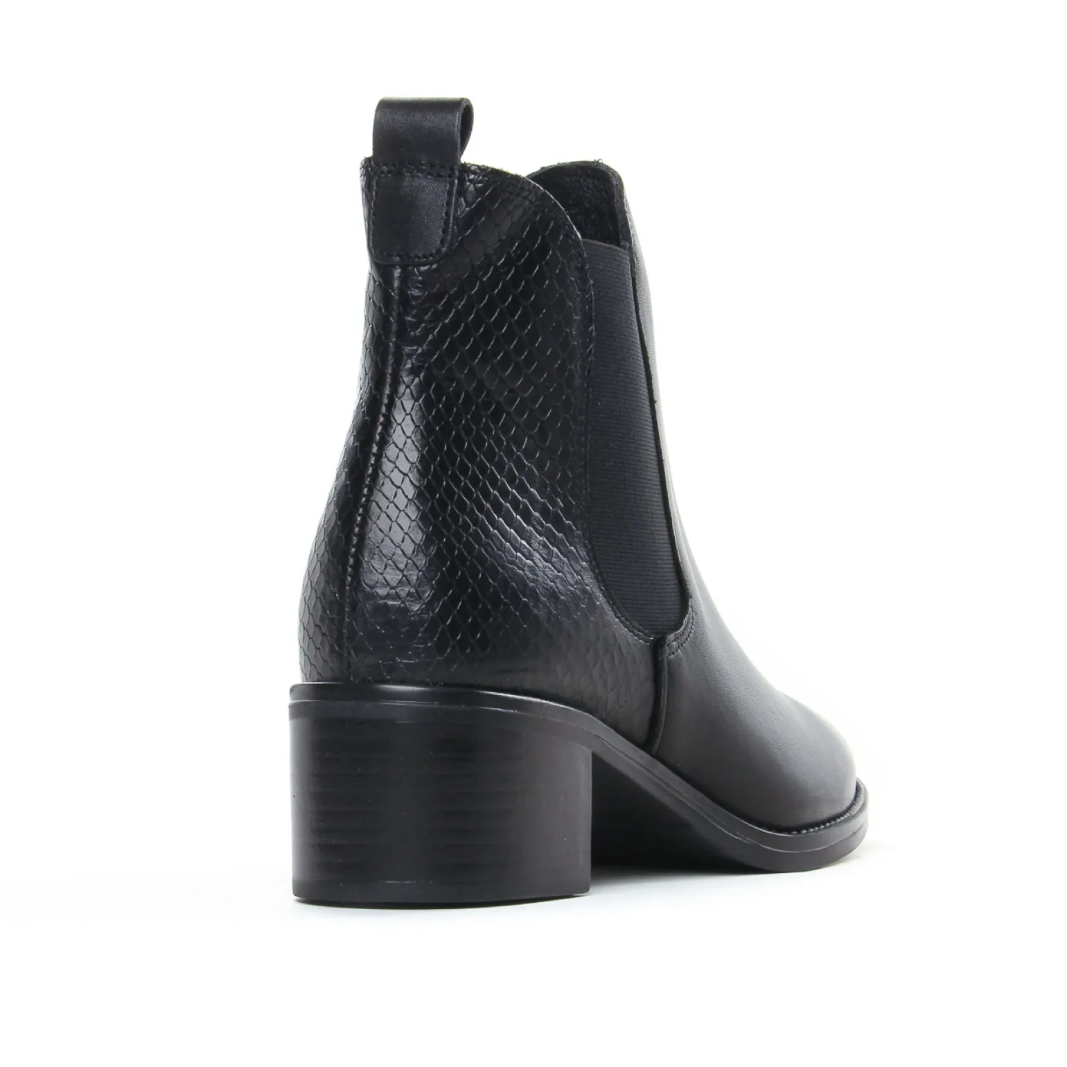 Boots Élastiquées de la marque Scarlatine de couleur noir. Un classique indémodable, les bottines Chelsea à talon haut avec une tige en cuir, pour cette nouvelle collection automne hiver 2022 une version cognac patiné, une noire te une gris argent, un talon carré haut de 5 cm, un style toujours aussi actuel, un classique chic pour votre garde robe hivernale !