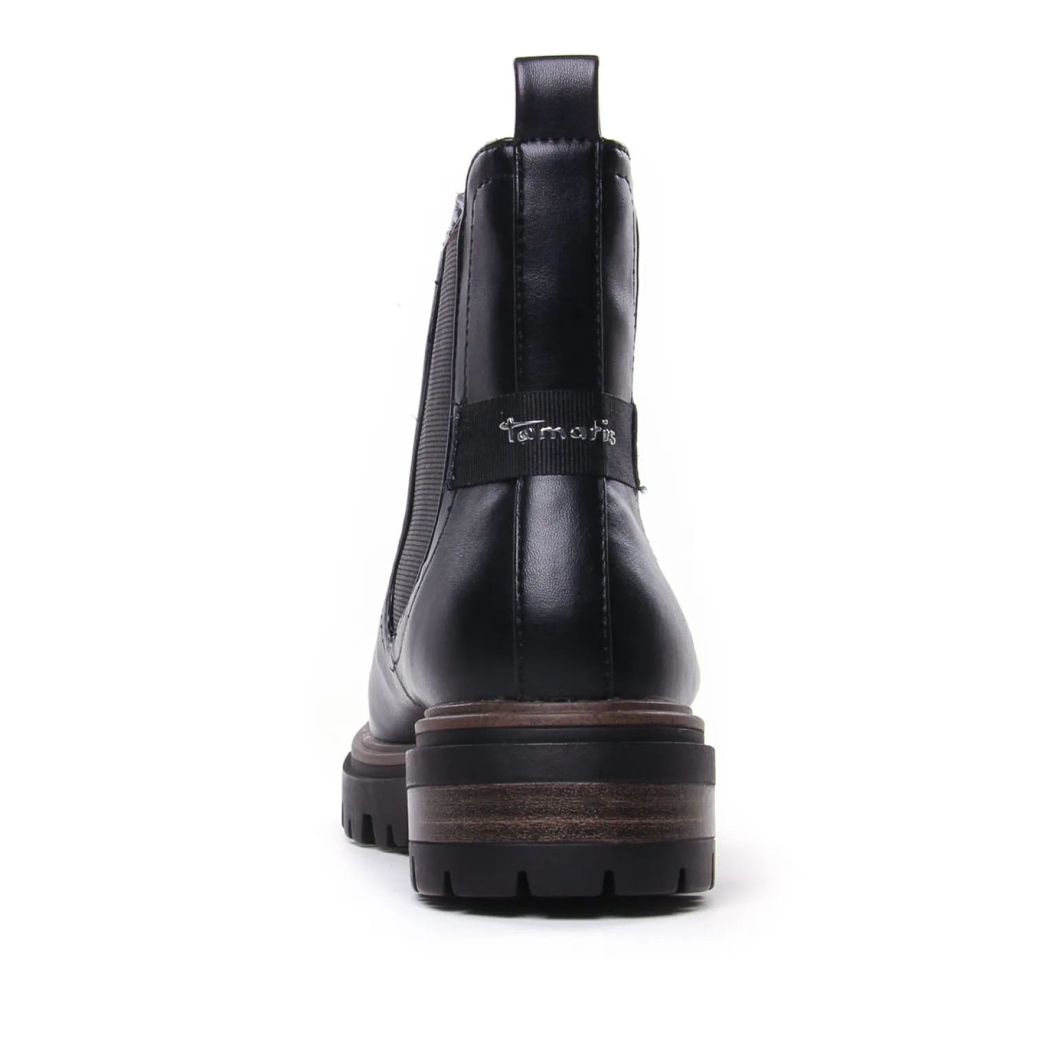 Boots Élastiquées de la marque Tamaris de couleur noir mat. Boots inspiration Chelsea revisitées de part sa semelle épaisse sportswear roots au top de la tendance du moment et qui plus est super confortables grâce à une première ergonomique confortable Touch It, une doublure en textile velours, bottines de la gamme Vegan Tamaris, des boots Chelsea confort et mode nouvelle collection hiver 2024 : on adore !