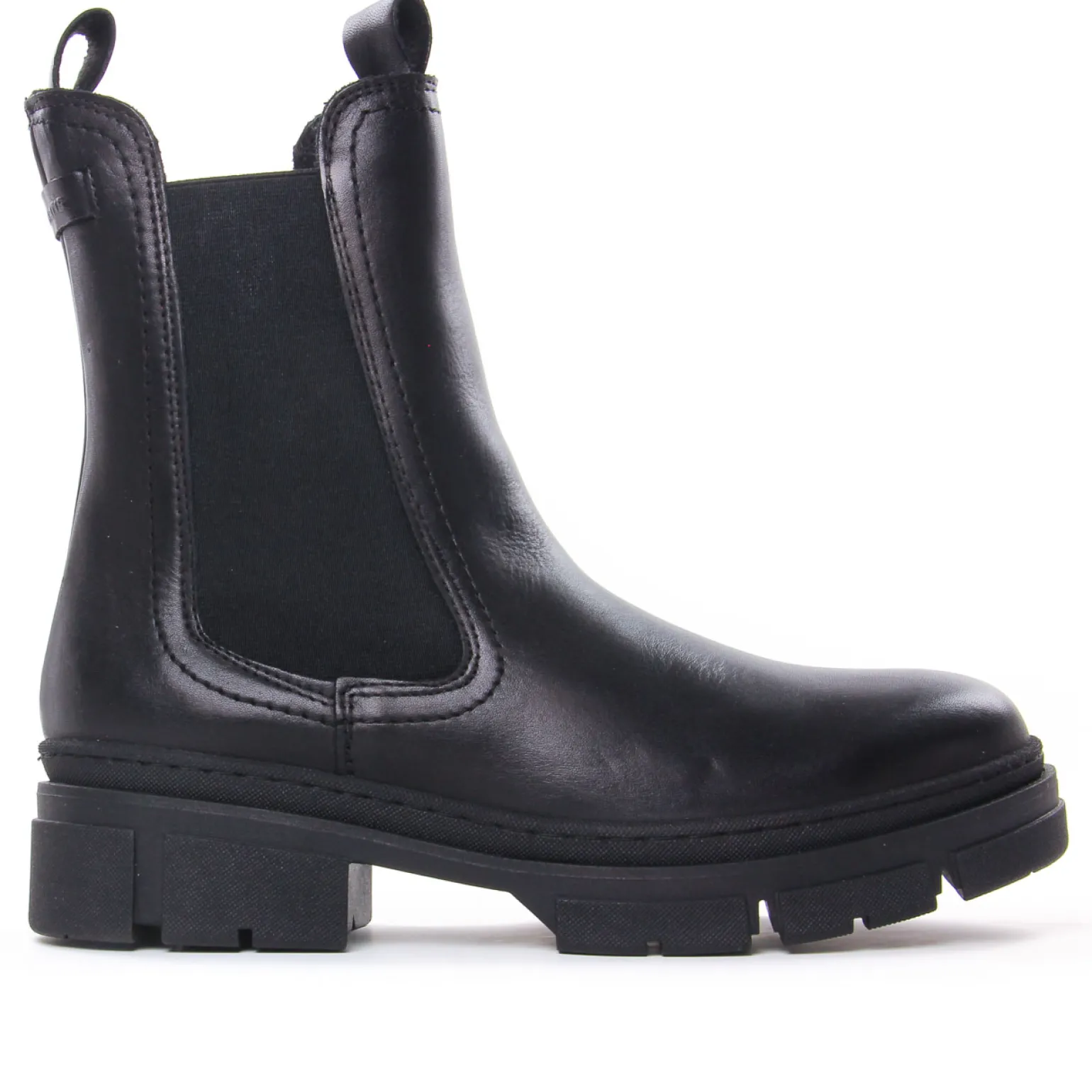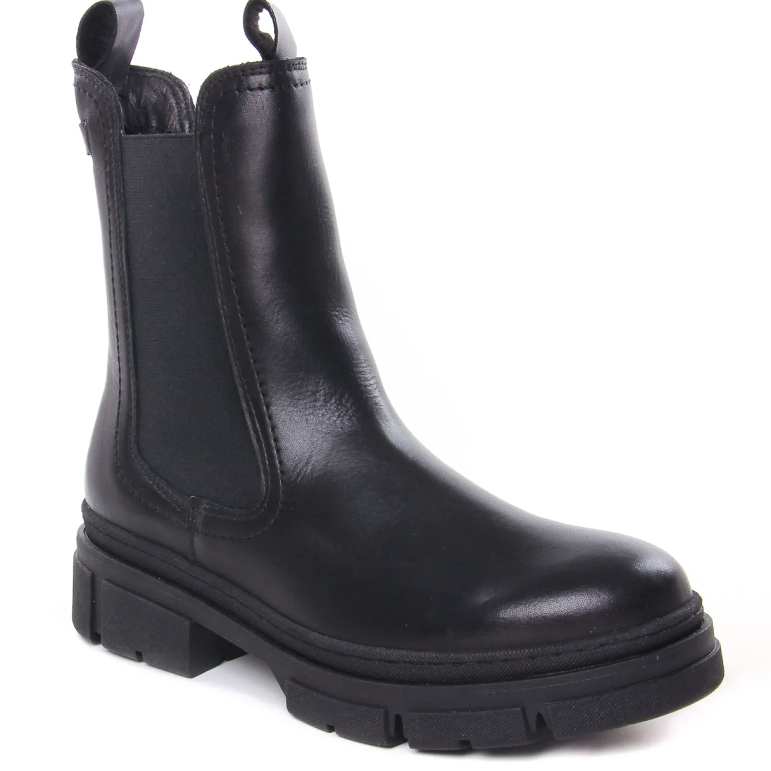 Boots Élastiquées de la marque Tamaris de couleur noir. La bottine Chelsea classique mariée à une semelle épaisse et voici une superbe paire de boots glam’rock avec une tige cuir haute, une première de propreté confortable nommée Touch it, du style et signé Tamaris nouvelle collection hiver 2023-2024 !
