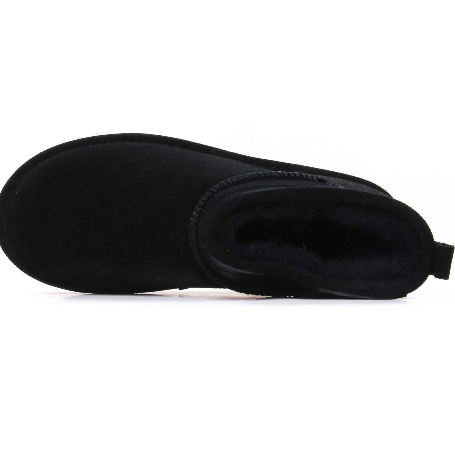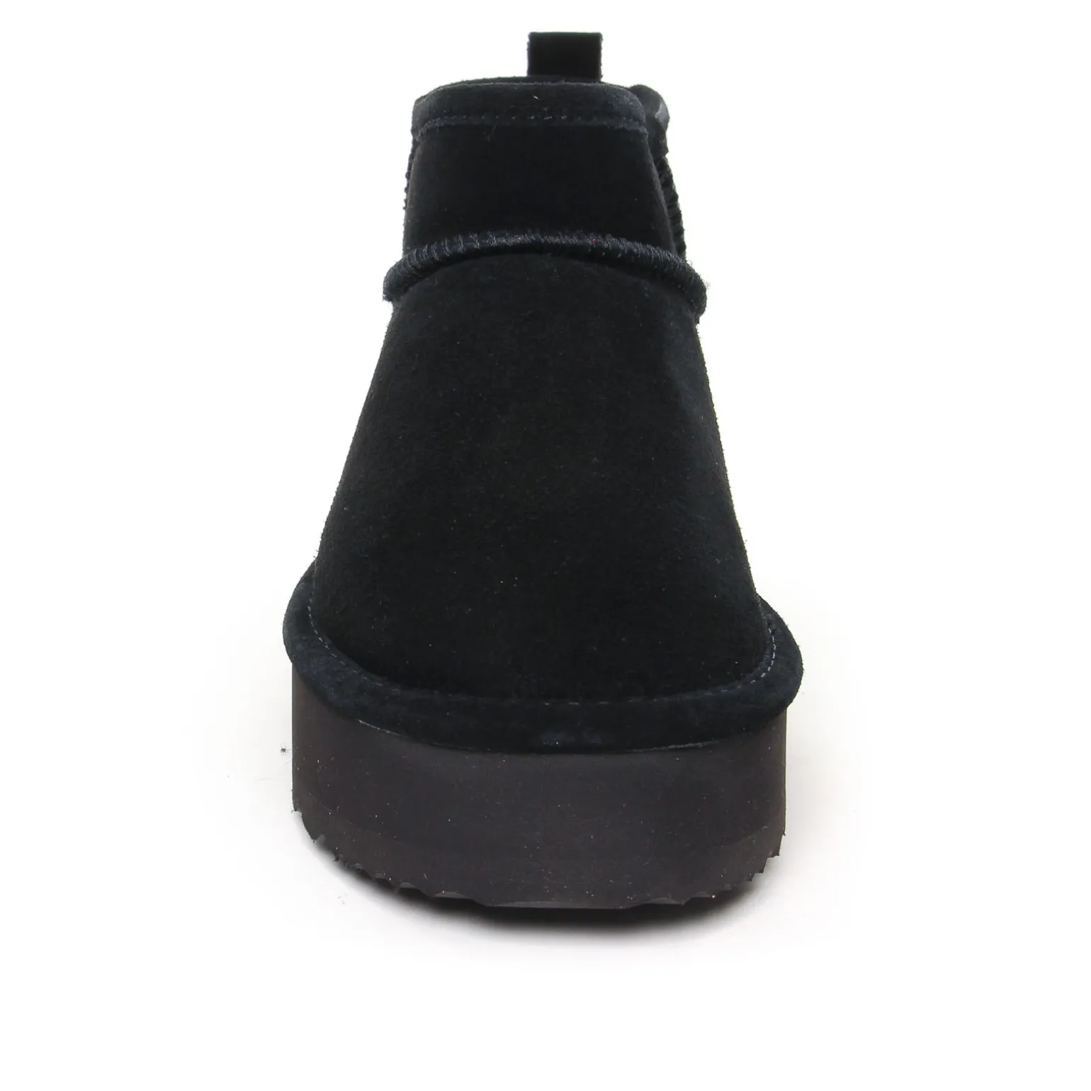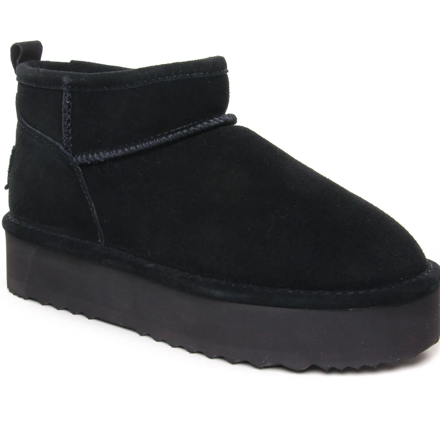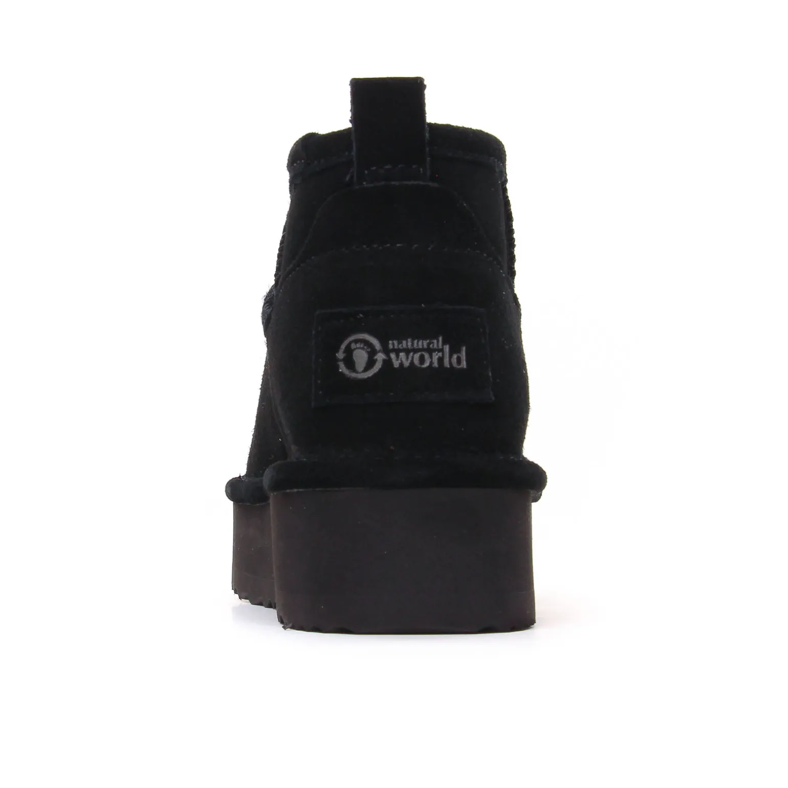 Boots Fourrées de la marque Natural World de couleur noir. Low boots d’hiver avec double semelle offrant un amorti et un soutien supplémentaires, du cuir suédé pour la tige et une semelle en EVA recyclé, doublure en laine naturelle, offrant chaleur et douceur, un look chic et décontracté, les bottines ALASKA sont un must have !