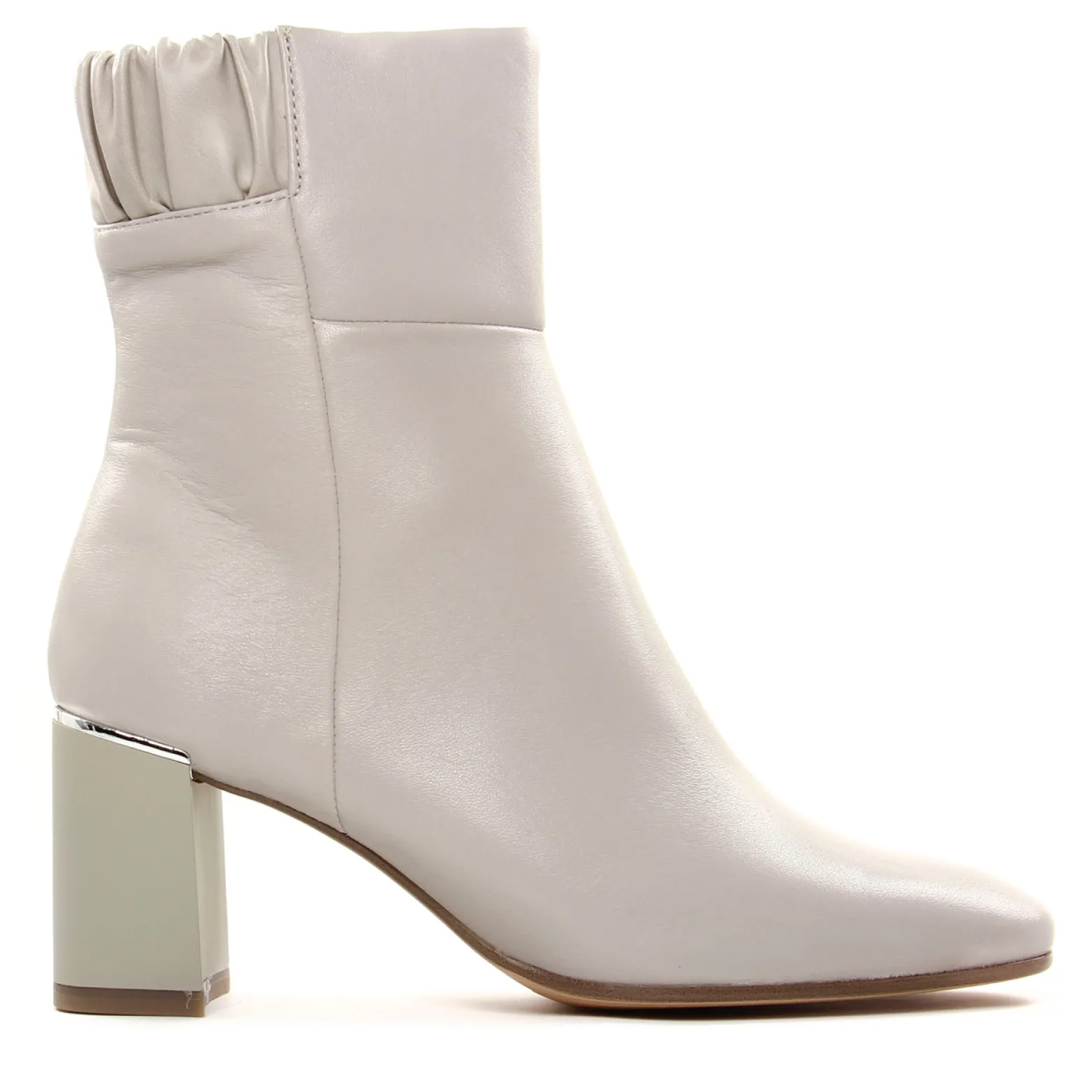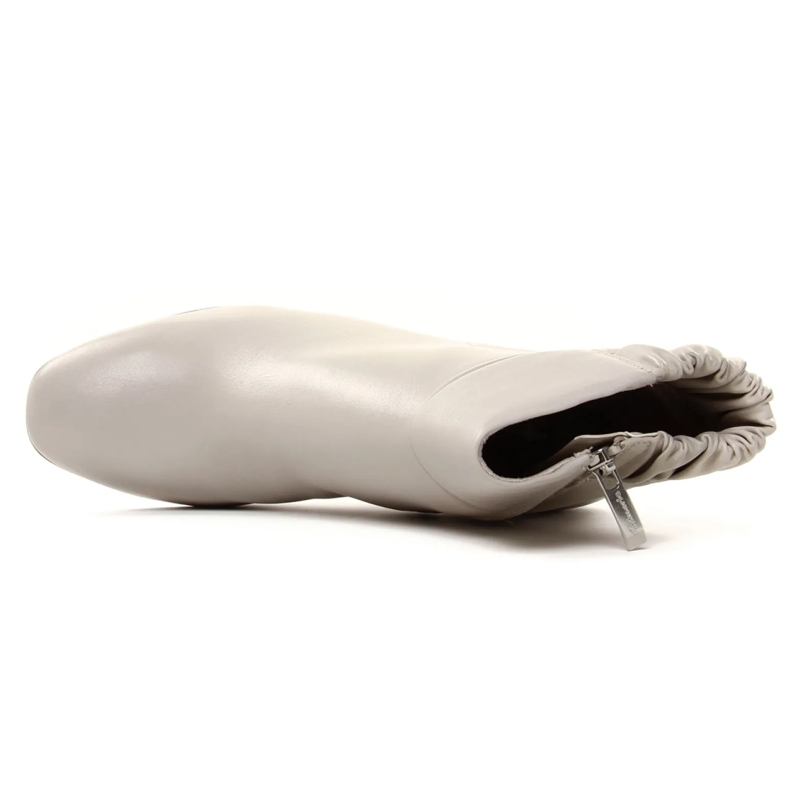 Boots de la marque Tamaris de couleur blanc creme. Boots mode avec une tige haute en cuir, un talon design pour un rendu original et tendance, ganse élastique sur le décolleté pour un meilleur chaussant, une belle teinte crème claire, talon haut de 7 cm