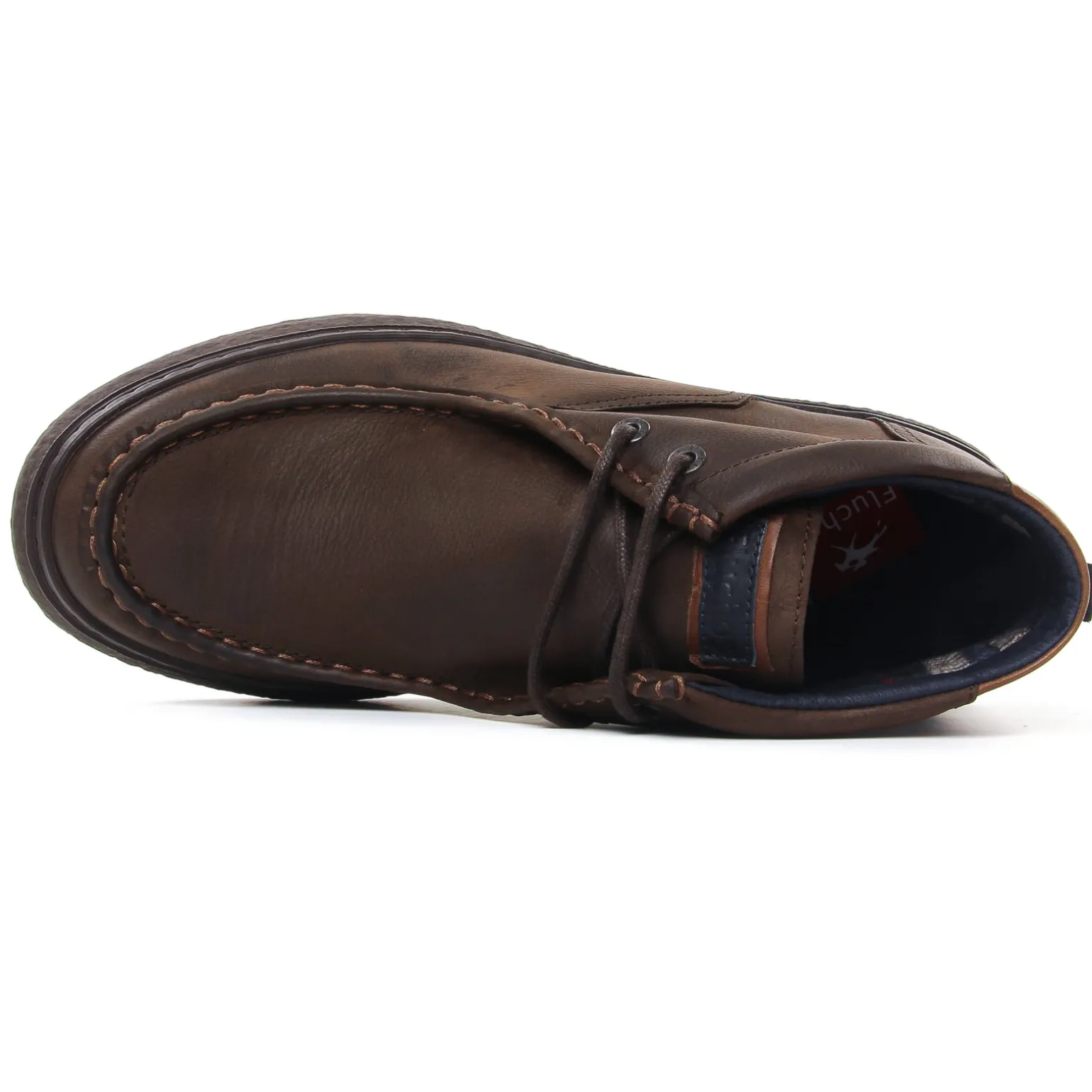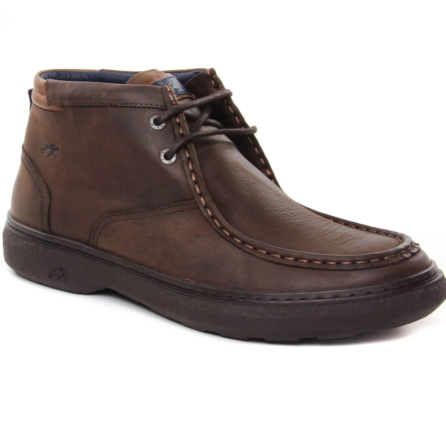 Bottines Chukka de la marque Fluchos de couleur marron. Bottines en cuir de qualité souple de couleur marron foncé, doublure et première en microfibres parfaites contre l’humidité, chaussures signées Fluchos homme nouvelle collection automne hiver 2023.