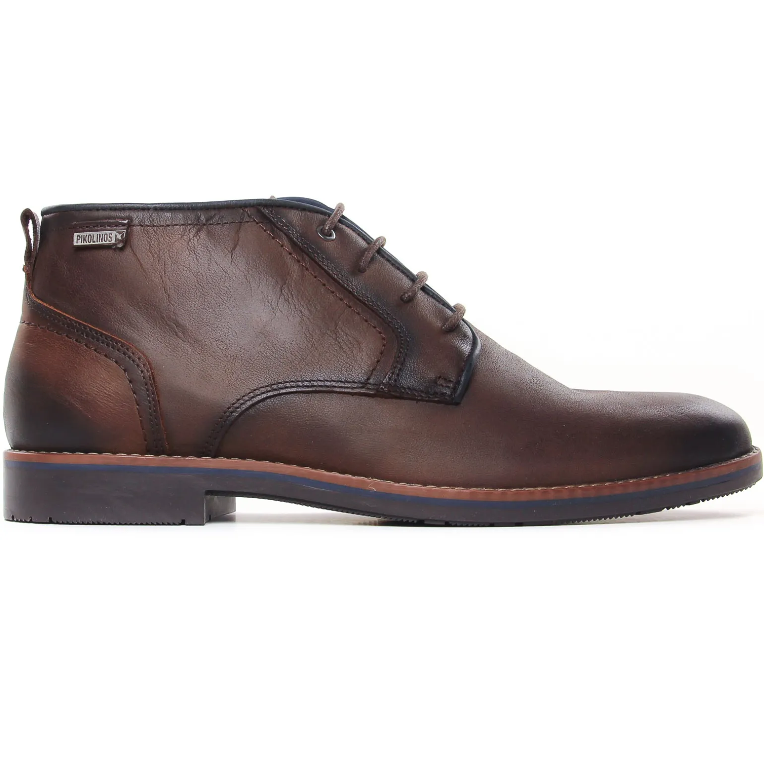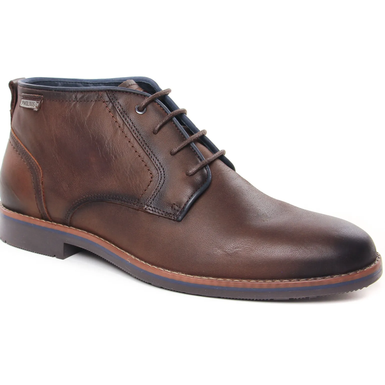 Bottines Chukka de la marque Pikolinos de couleur marron foncé. Chaussures mi-montantes style bottines Chukka, une semelle souple pour un confort de marche excellent, une tige cuir marron, doublure textile et première cuir, nouvelle collection Pikolinos homme hiver 2024-25