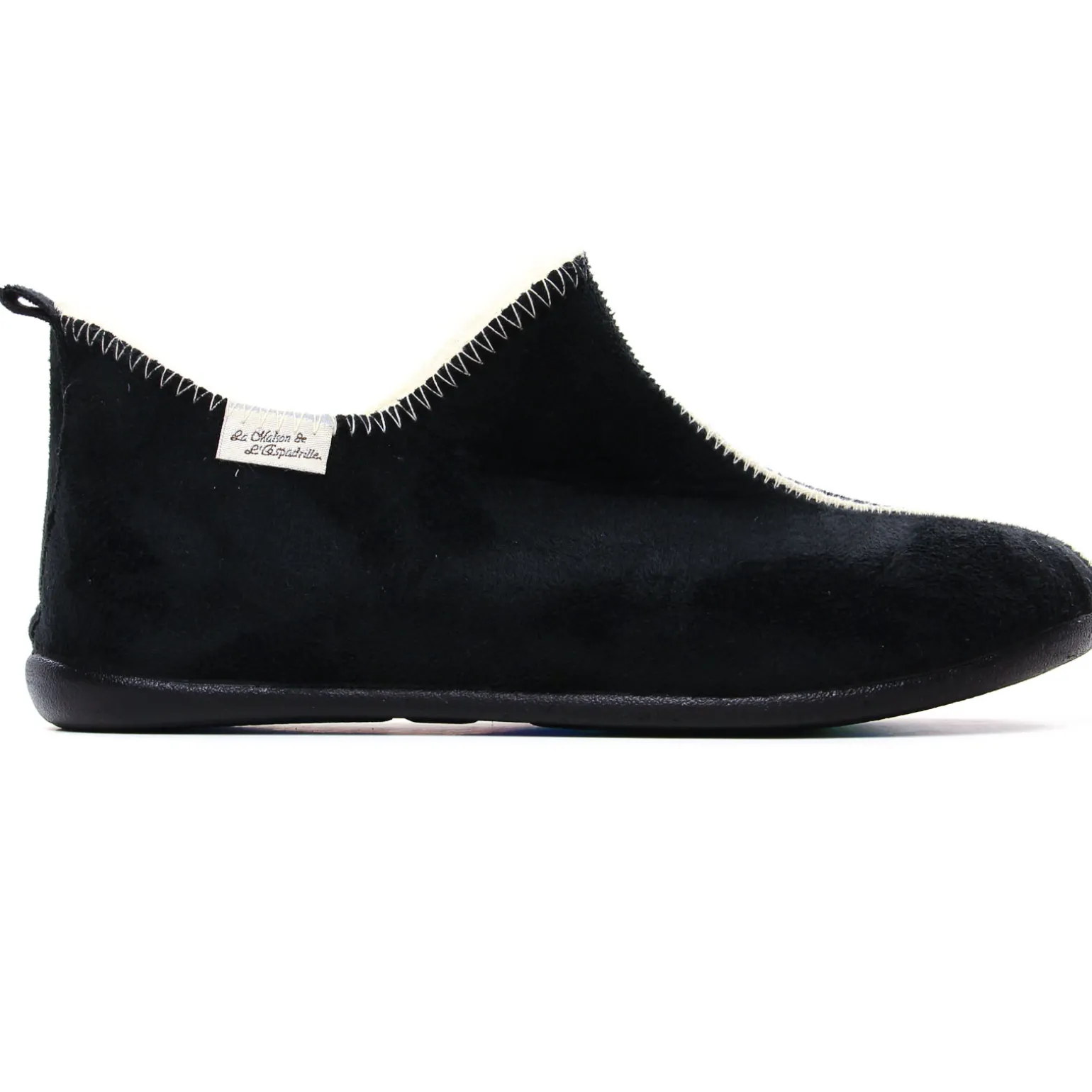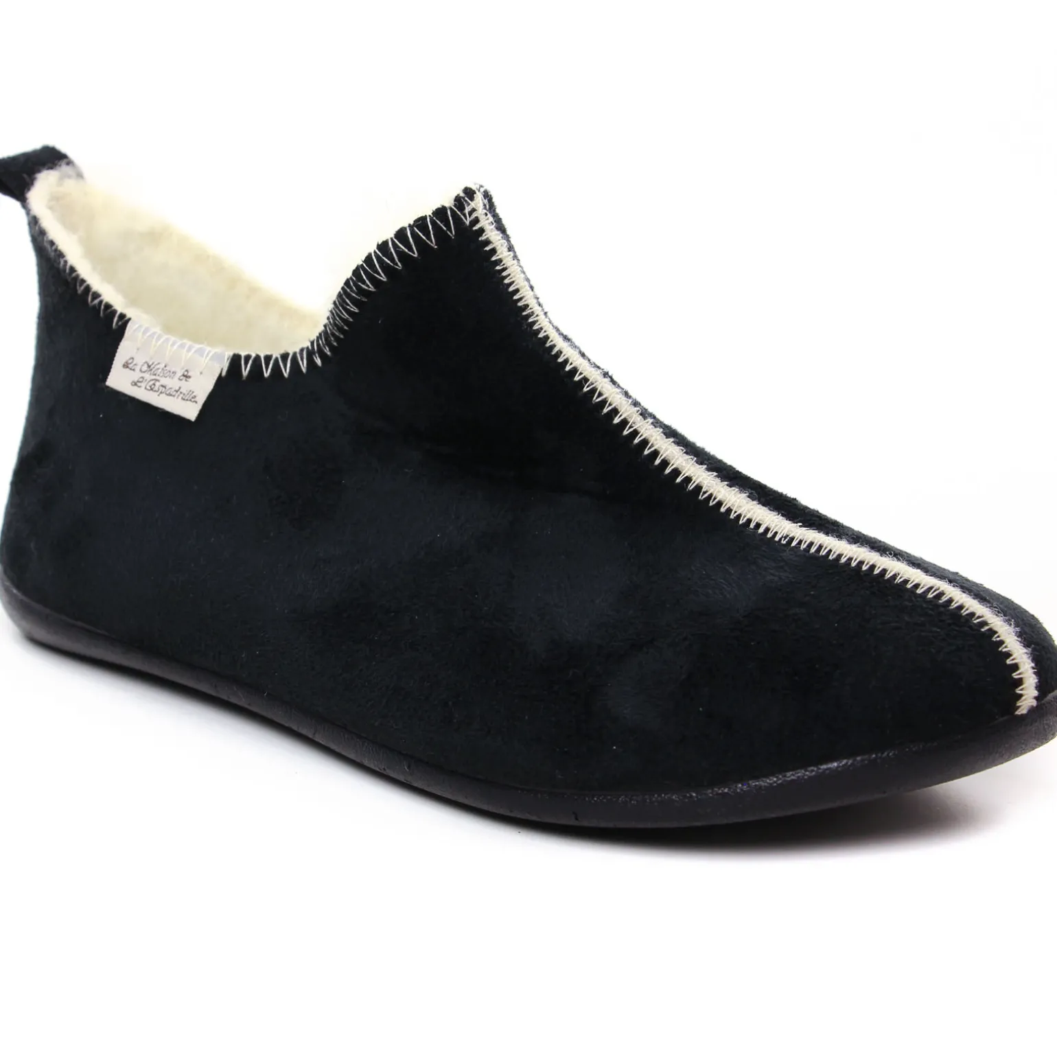 Chaussons de la marque Maison De L'espadrille de couleur noir. Taillés pour le cocooning, voici des jolis chaussons femme doublés en simili fourrure chaude ! Chaussons signés La Maison de l’Espadrille nouvelle collection hiver 2024