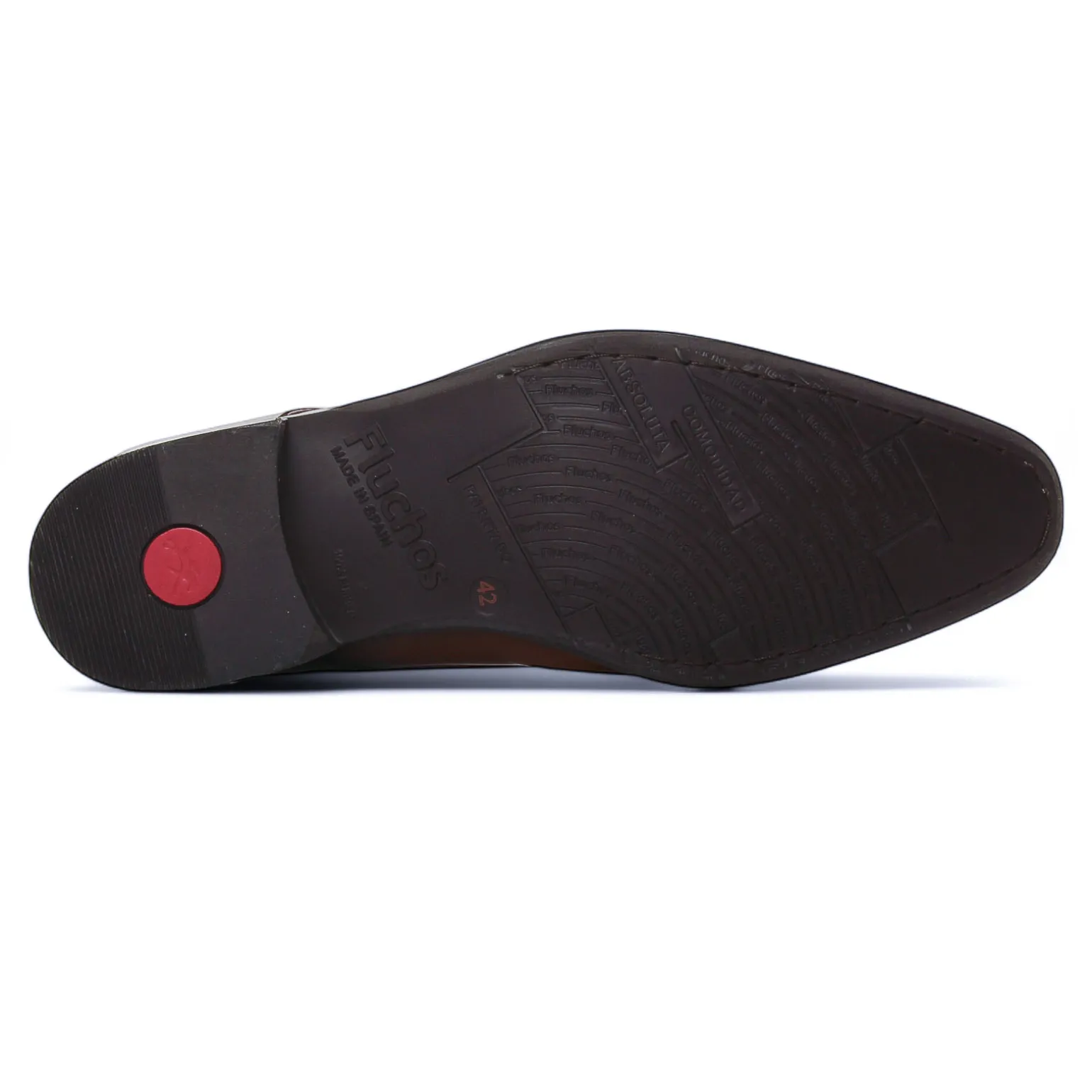 Derbys de la marque Fluchos de couleur marron. Chaussures de ville basses à lacets style derby, tige en cuir noir ou marron, lacets gris ou noirs au choix, talon antichoc, doublure et première active en microfibres respirantes, du style en tout confort, le fil directeur de la marque ibérique Fluchos.