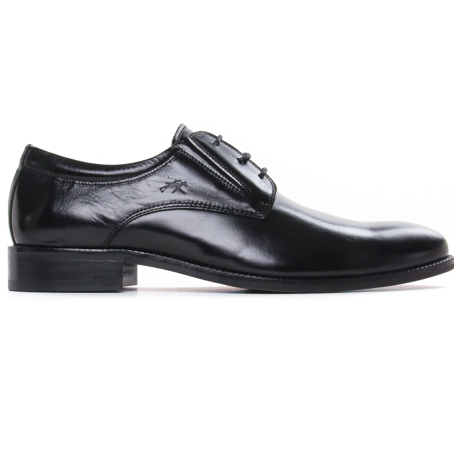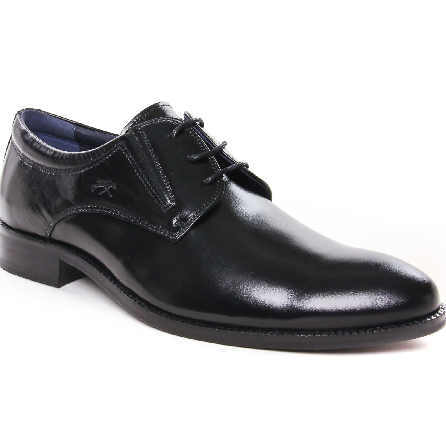Derbys de la marque Fluchos de couleur noir. Chaussures de ville très chic en cuir noir lisse, une tige fine, ganse élastiquée façon slipper, un bout droit, doublures en microfibre brevetée antibactérienne, du chic et du confort pour ces derbys signées par la marque espagnole Fluchos, derbys élégantes avec un cuir glacé patiné, un talon élastomère antichoc pour un grand confort de marche.