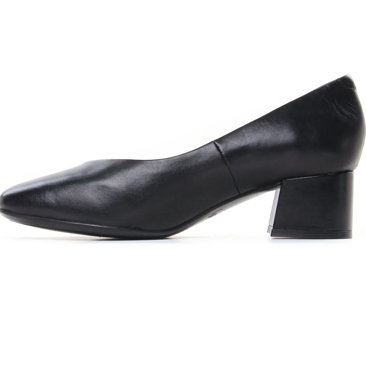 Escarpins Trotteur de la marque Caprice de couleur noir. Un talon carré haut de 5 cm, une tige en cuir lisse noir, une doublure et une première de propreté en cuir, un décolleté en pointe très moderne et féminin jumelé à un bout carré, escarpins cuir confortables signés Caprice