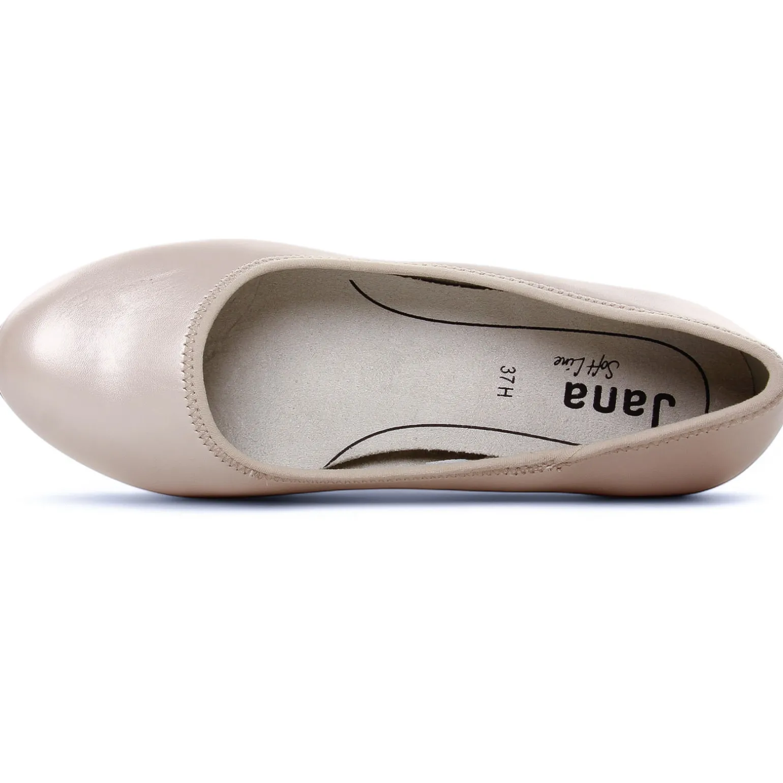 Escarpins Trotteur de la marque Jana de couleur beige perle. Trotteur léger à bout rond, conçu dans une matière certifiée Vegan. Il est doté d’un talon carré élégant pour une bonne stabilité et un confort optimal. Sa première Soft Line assure un excellent amorti. Le patin antiglisse garantit une adhérence parfaite. Un modèle alliant style, éthique et praticité !