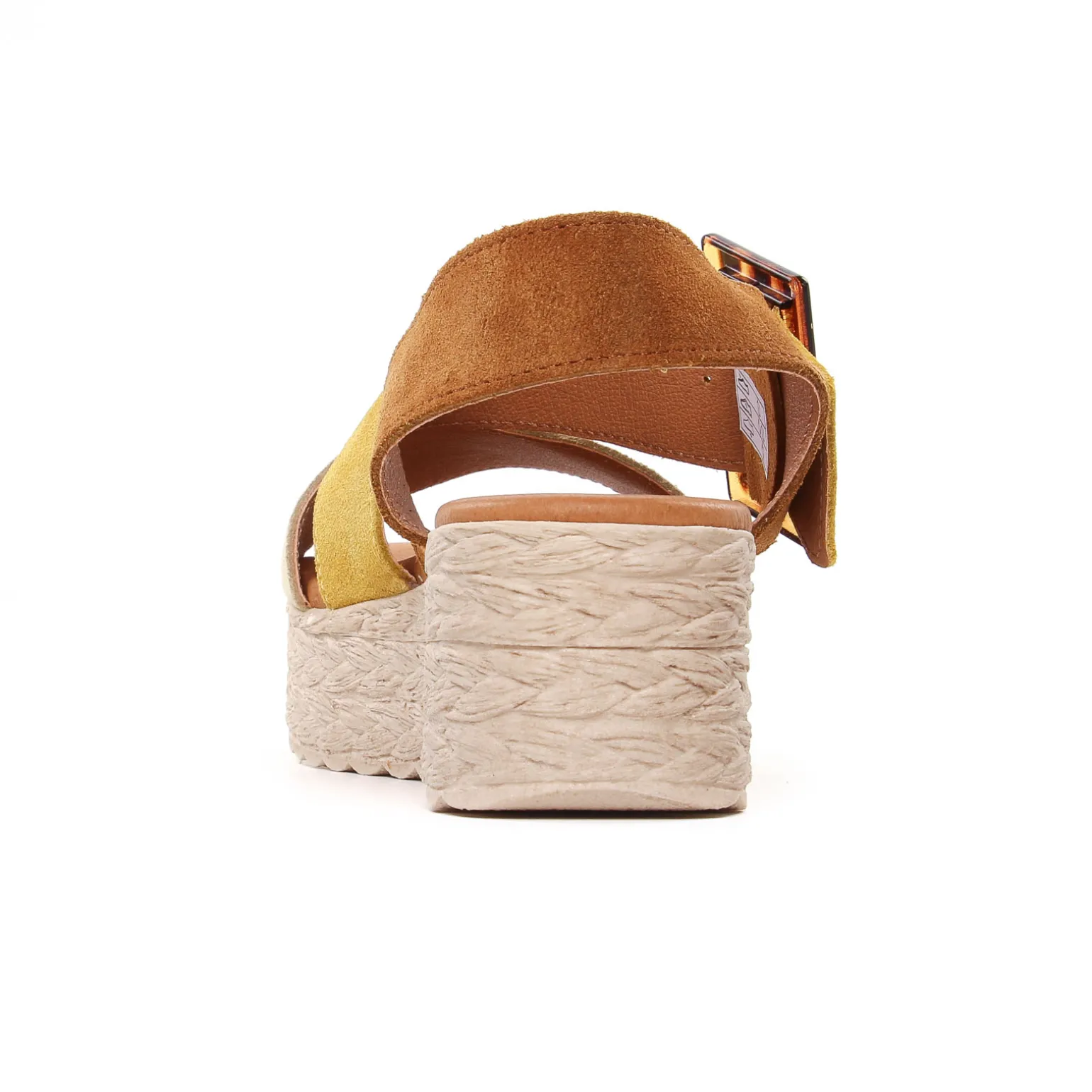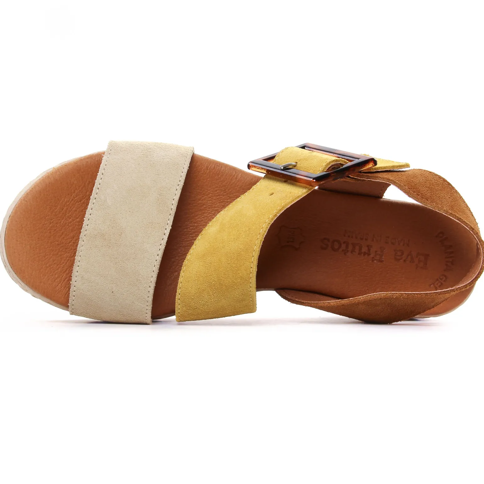 Espadrilles Compensées de la marque Eva Frutos de couleur beige multi. Une plateforme en simili cordes hyper légère et du coup hyper confort, nu-pied cuir compensé haut de 5.5 cm au talon signé Eva Frutos nouvelle collection été 2024, bride coup de pied ornée d’une belle boucle, une tige en cuir suédé nubuck, une première cuir confortable