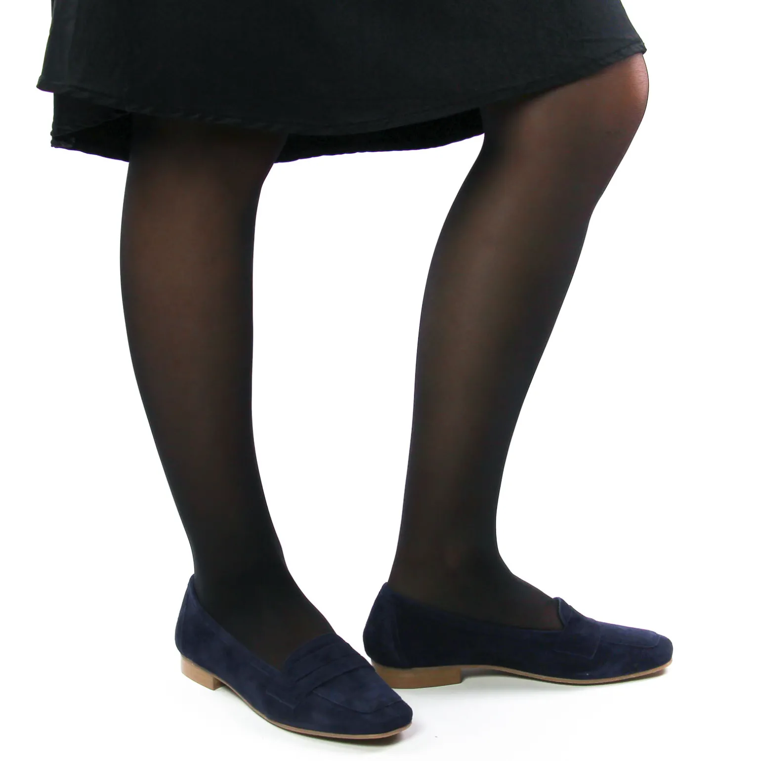 Mocassins de la marque Scarlatine de couleur bleu marine. Mocassins en cuir suédé nubuck non doublés, très légers et très souples. Différentes teintes disponibles pour ces mocassins signés Scarlatine pour sa nouvelle collection, mocassins femme made in UE, fabriqués au Portugal.