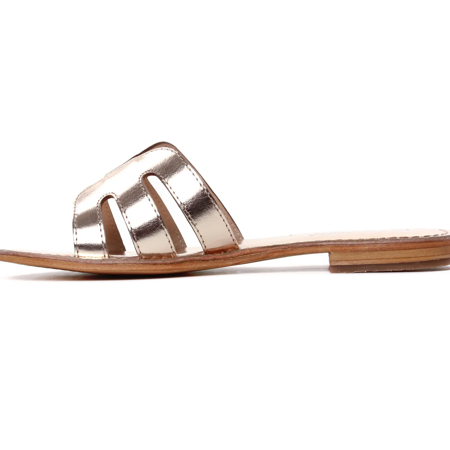 Mules de la marque Les Tropéziennes de couleur or. Mules en cuir hyper tendances, chics et élégantes signées par la célèbre marque de spartiates et de sandales Les Tropéziennes par M Bélarbi, ce best seller DAMIA revient pour cette nouvelle collection été 2024, petite talonnette élastomère anti dérapante, mules disponibles en cuir lisse noir, marron cognac, métallisé or, blanc ou rouge brique : hyper chic, un must have !