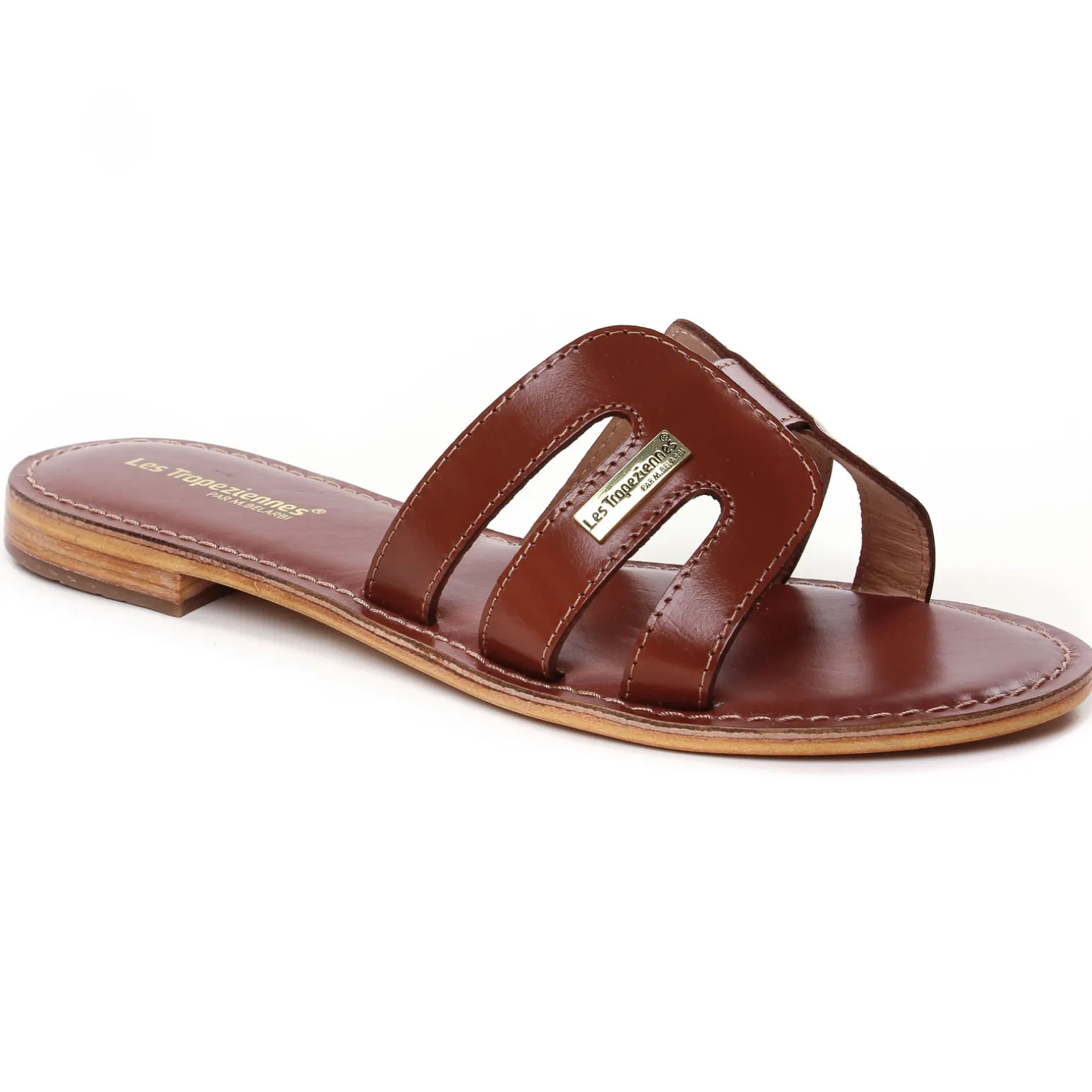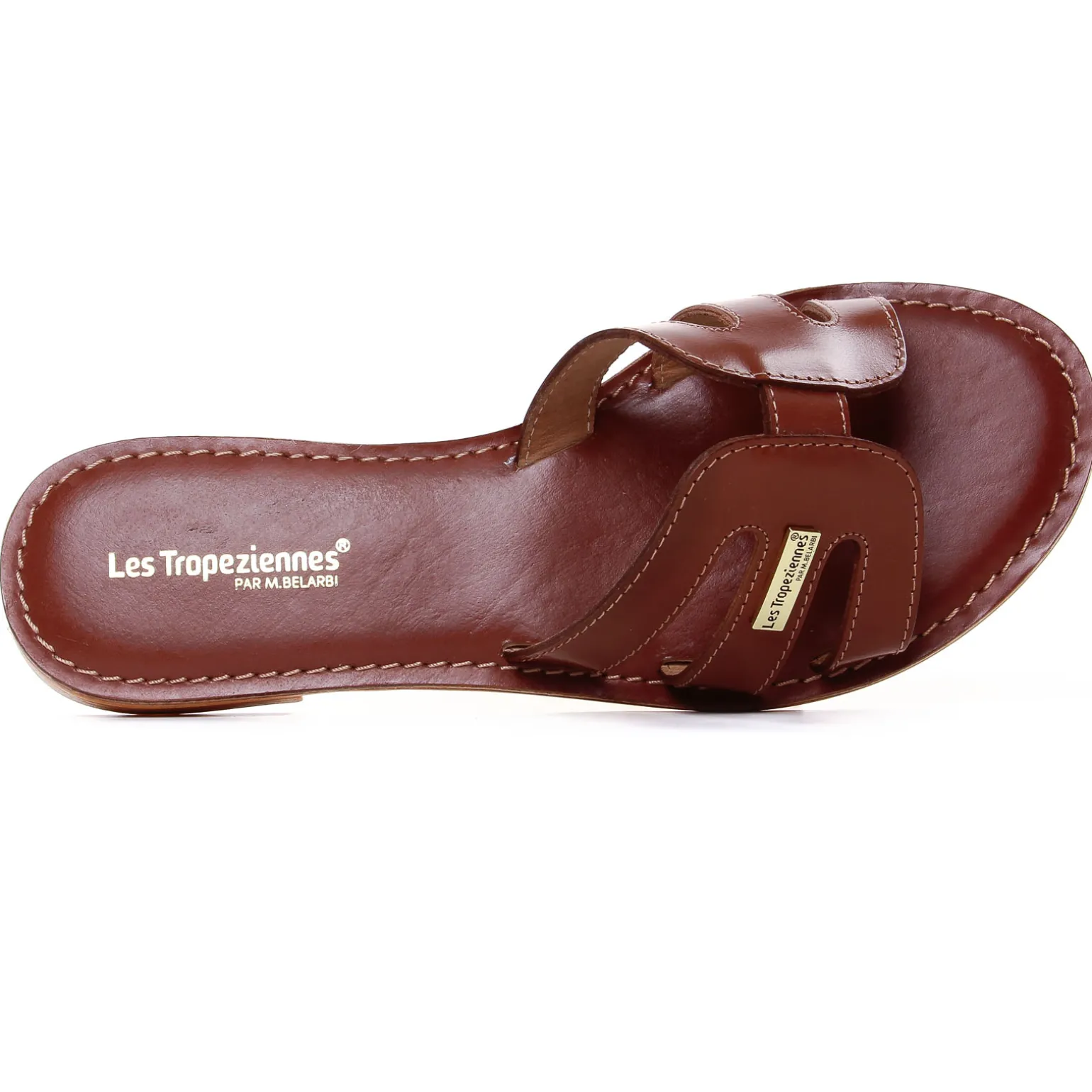 Mules de la marque Les Tropéziennes de couleur marron. Mules en cuir hyper tendances, chics et élégantes signées par la célèbre marque de spartiates et de sandales Les Tropéziennes par M Bélarbi, ce best seller DAMIA revient pour cette nouvelle collection été 2024, petite talonnette élastomère anti dérapante, mules disponibles en cuir lisse noir, marron cognac, métallisé or, blanc ou rouge brique : hyper chic, un must have !