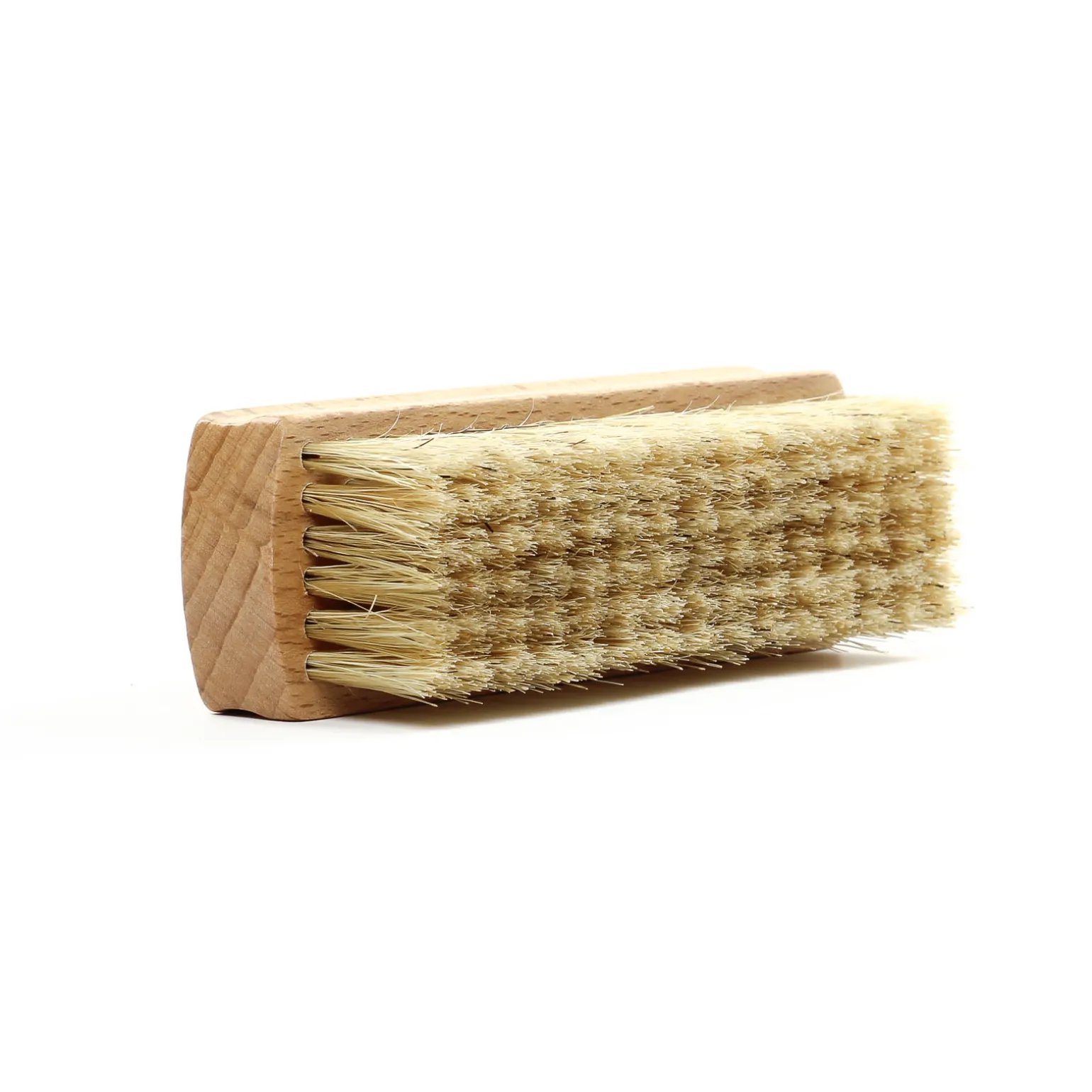 Nettoyants de la marque Famaco de couleur beige. Une brosse bien utile pour bien dépoussiérer le cuir avant de le cirer !