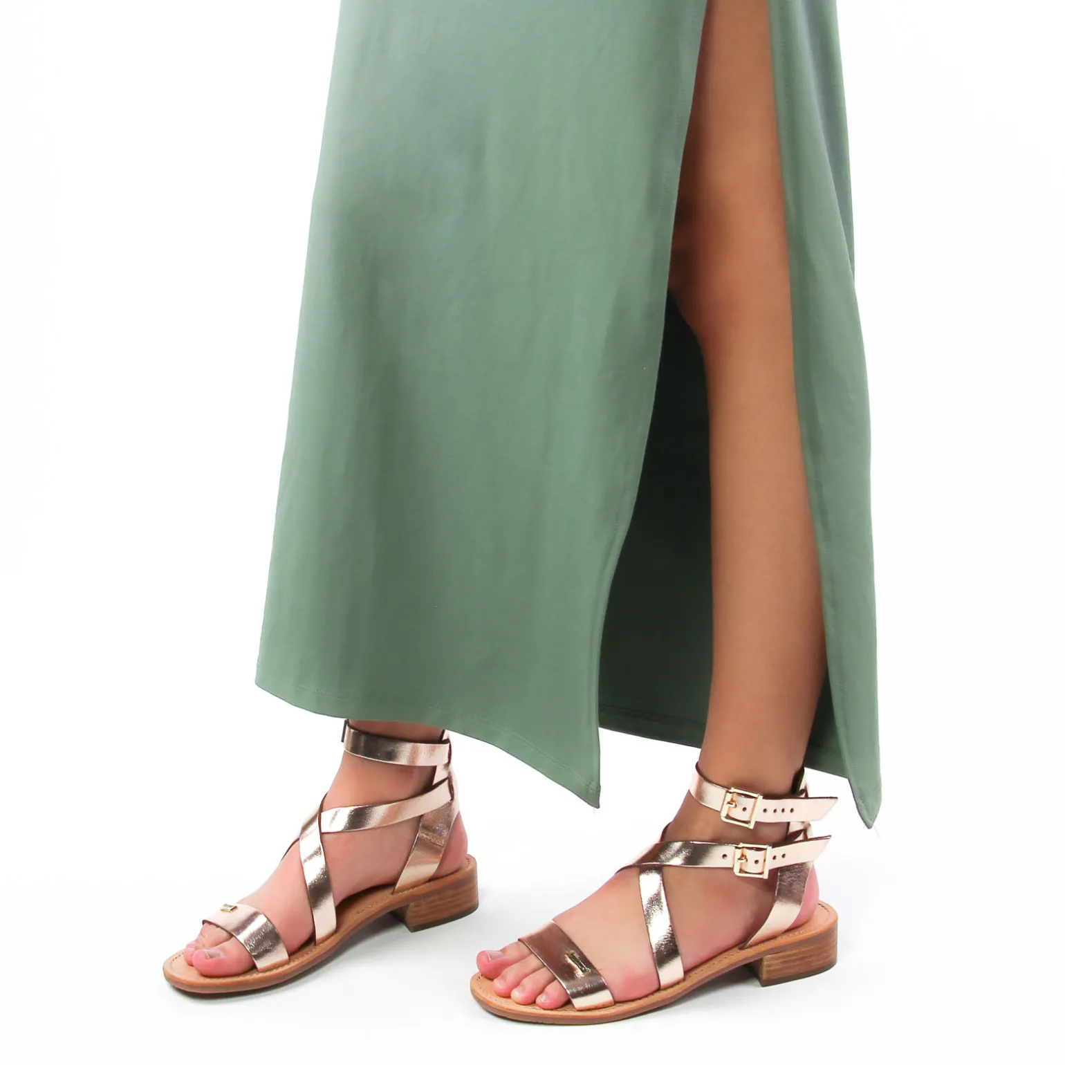 Nu-Pieds Talon de la marque Les Tropéziennes de couleur or. Un petit talon bloc haut de 3 cm pour cette sandale chic et glamour, spartiate montante, une démarche écologique avec des matières issues du recyclage pour fabriquer la semelle et l’utilisation de cuir dans le cadre d’une exploitation responsable, première cuir confortable, semelle en gomme recyclée antidérapante, sandales nouvelle collection été 2024 signées Les Tropéziennes par M. Belarbi