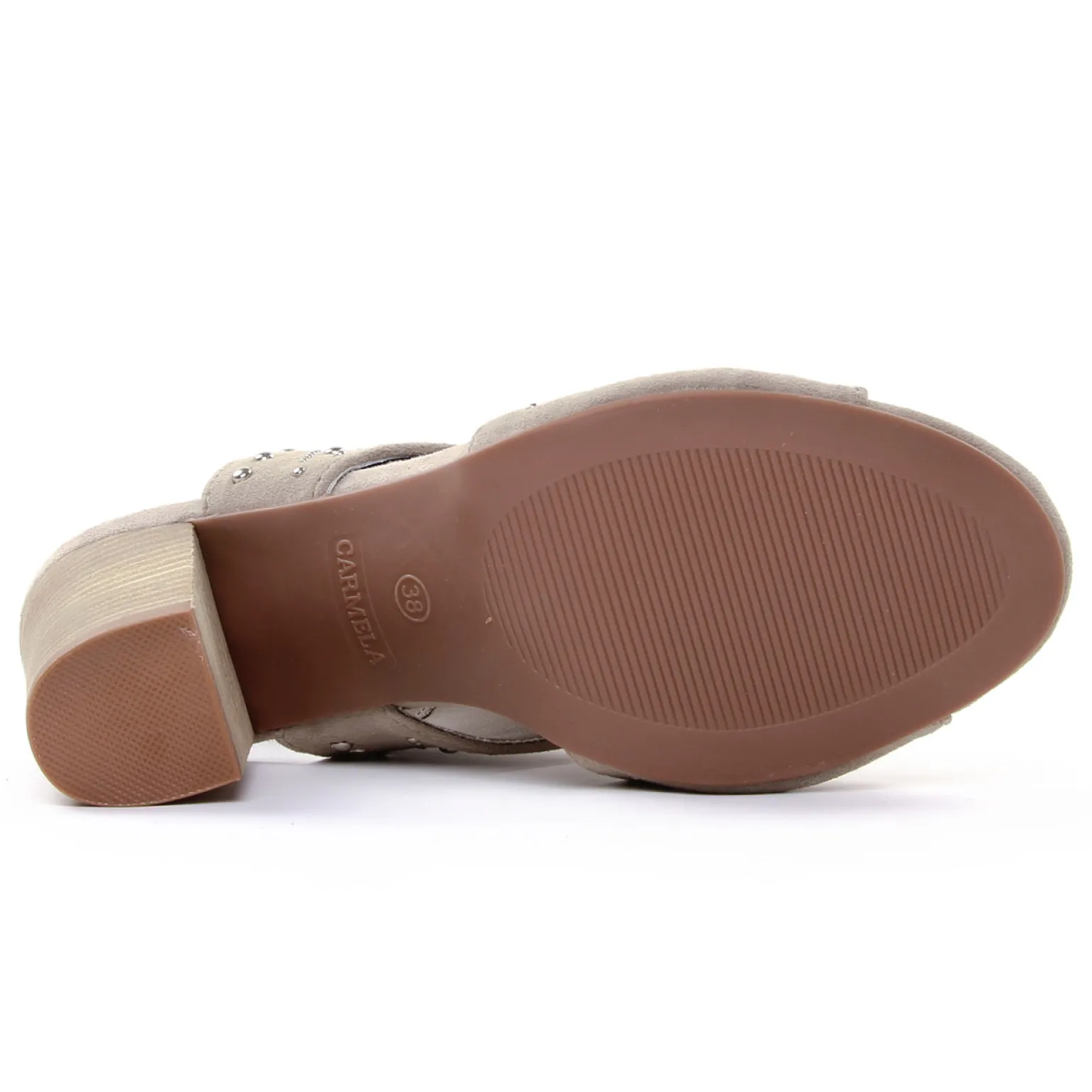 Nu-Pieds Talons Hauts de la marque Carmela de couleur beige. Superbes nu-pieds en cuir suédé nubuck de couleur beige taupe, élégants et chics, ces nu-pieds de la nouvelle collection été 2019 de chez Carmela trouveront une place de choix dans votre garde robe estivale.