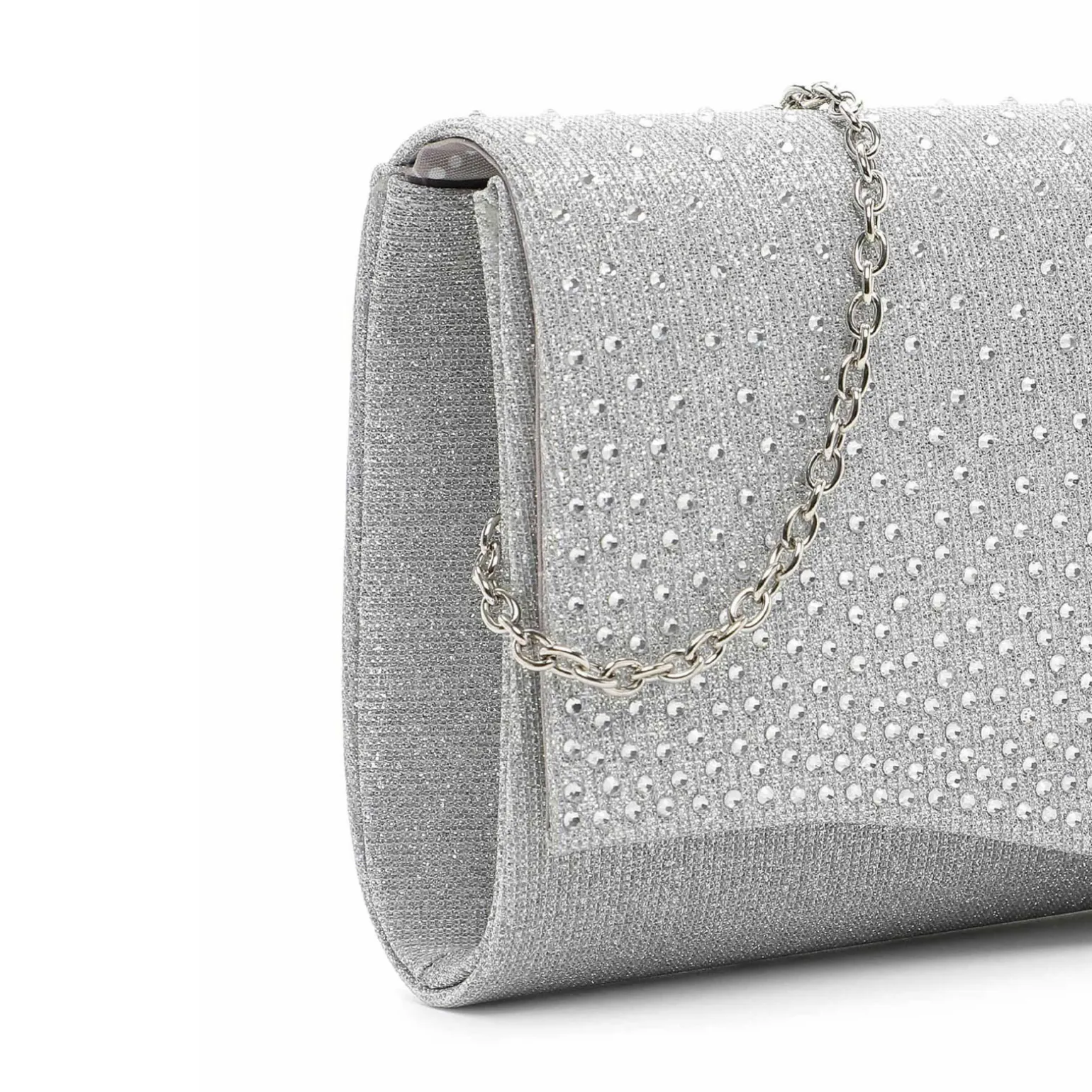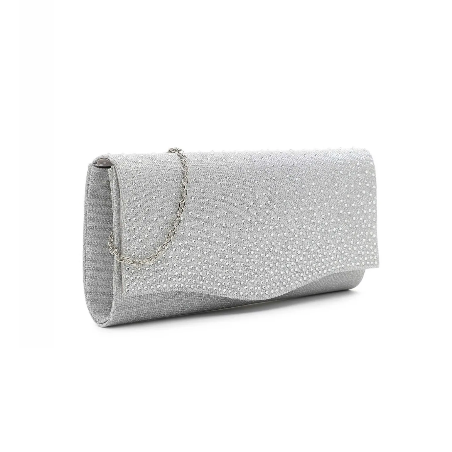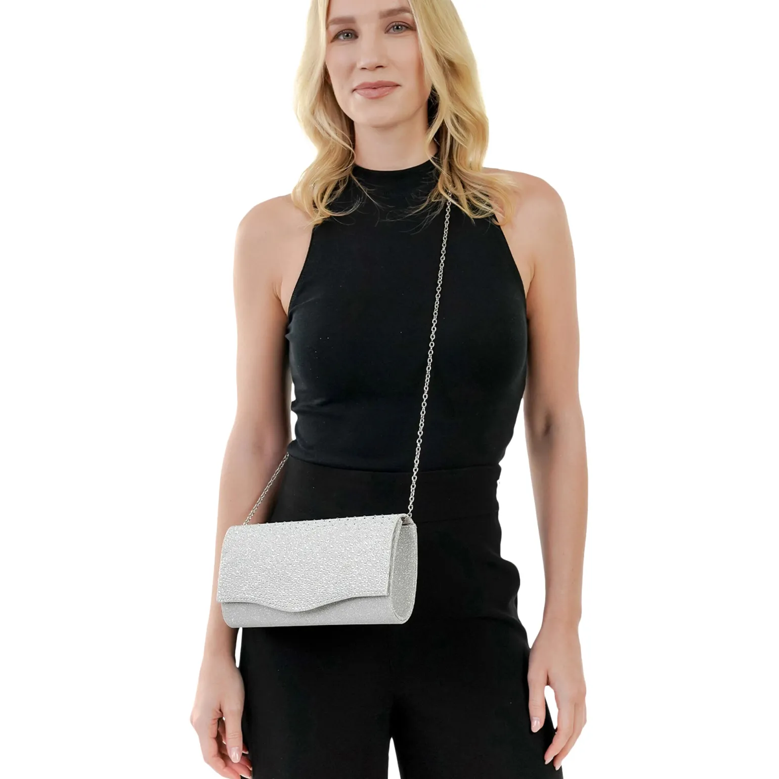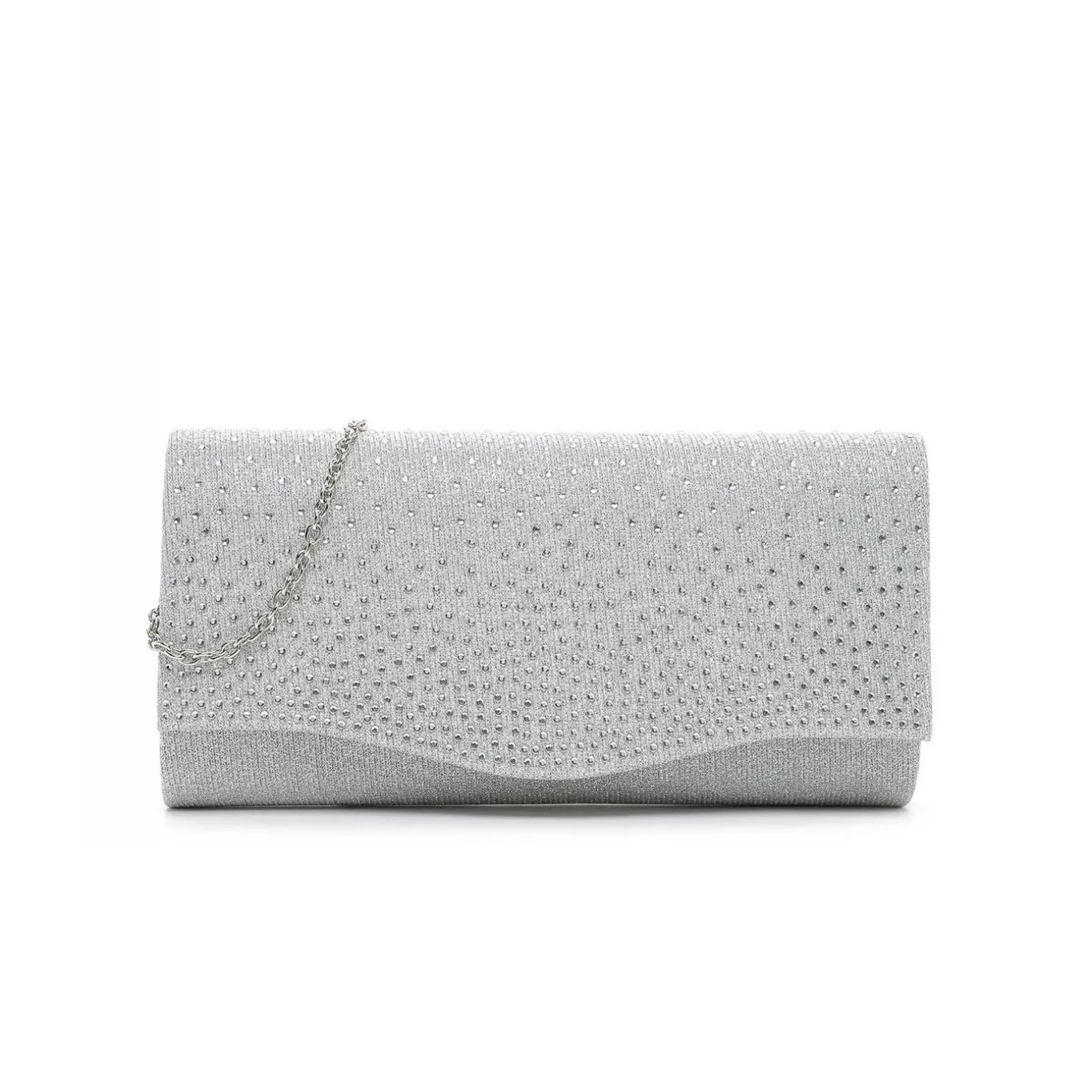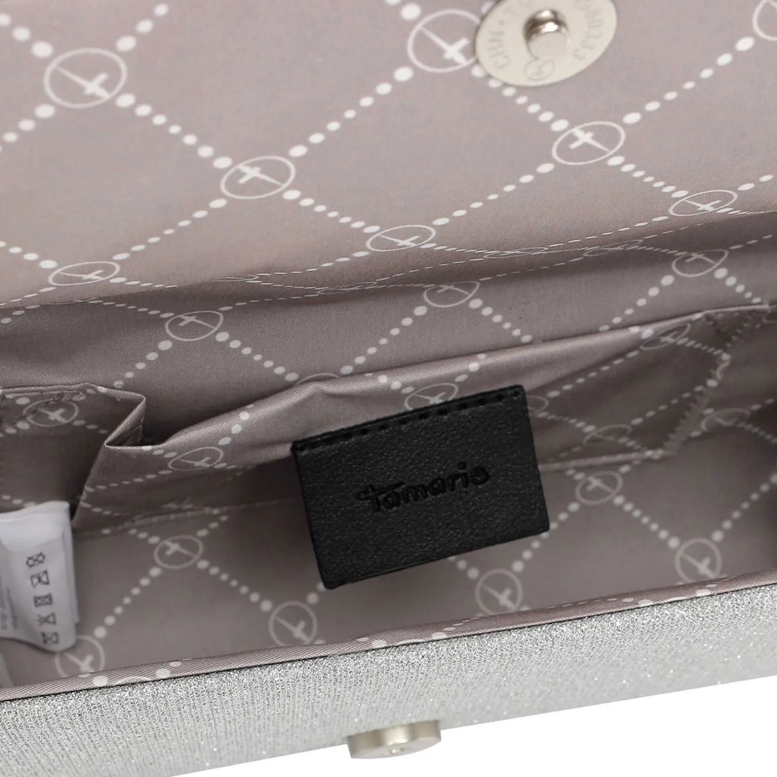 Sac À Main de la marque Tamaris de couleur gris argent. Petit sac à bandoulière avec une fermeture avec un bouton pression magnétique, sac Tamaris nouvelle collection printemps été 2024, construit avec un textile argentée, un sac parfait pour une touche glamour à votre style !