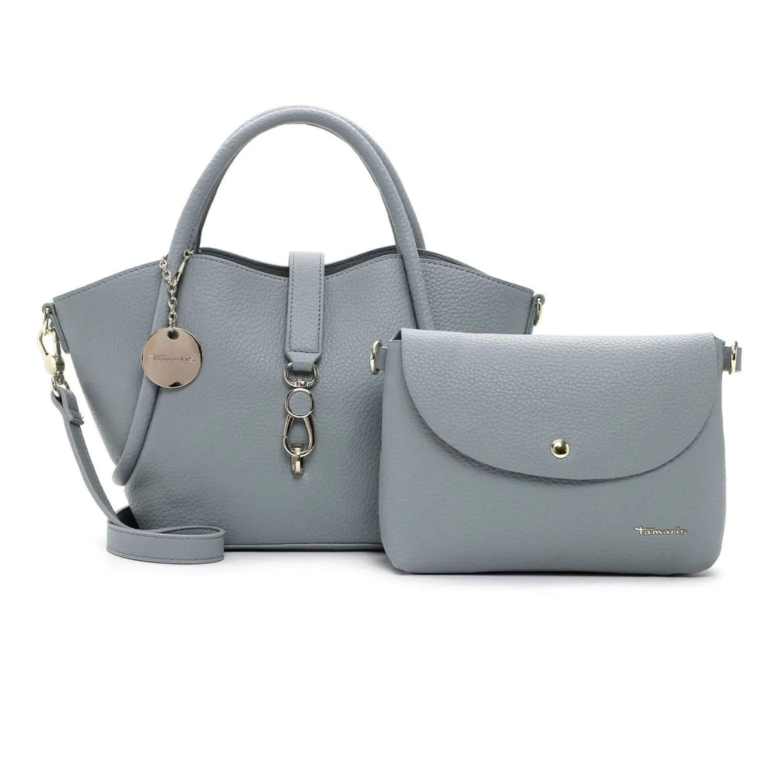 Sac À Main de la marque Tamaris de couleur bleu ciel. Sac cabas chic et élégant signé Tamaris femme, sac à main avec une bandoulière amovible de 140 cm et une fermeture à mousqueton fantaisie, sac à main en simili cuir.