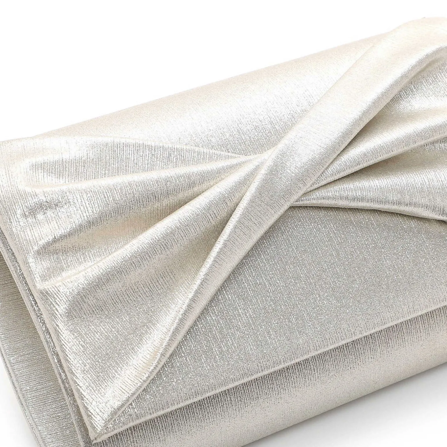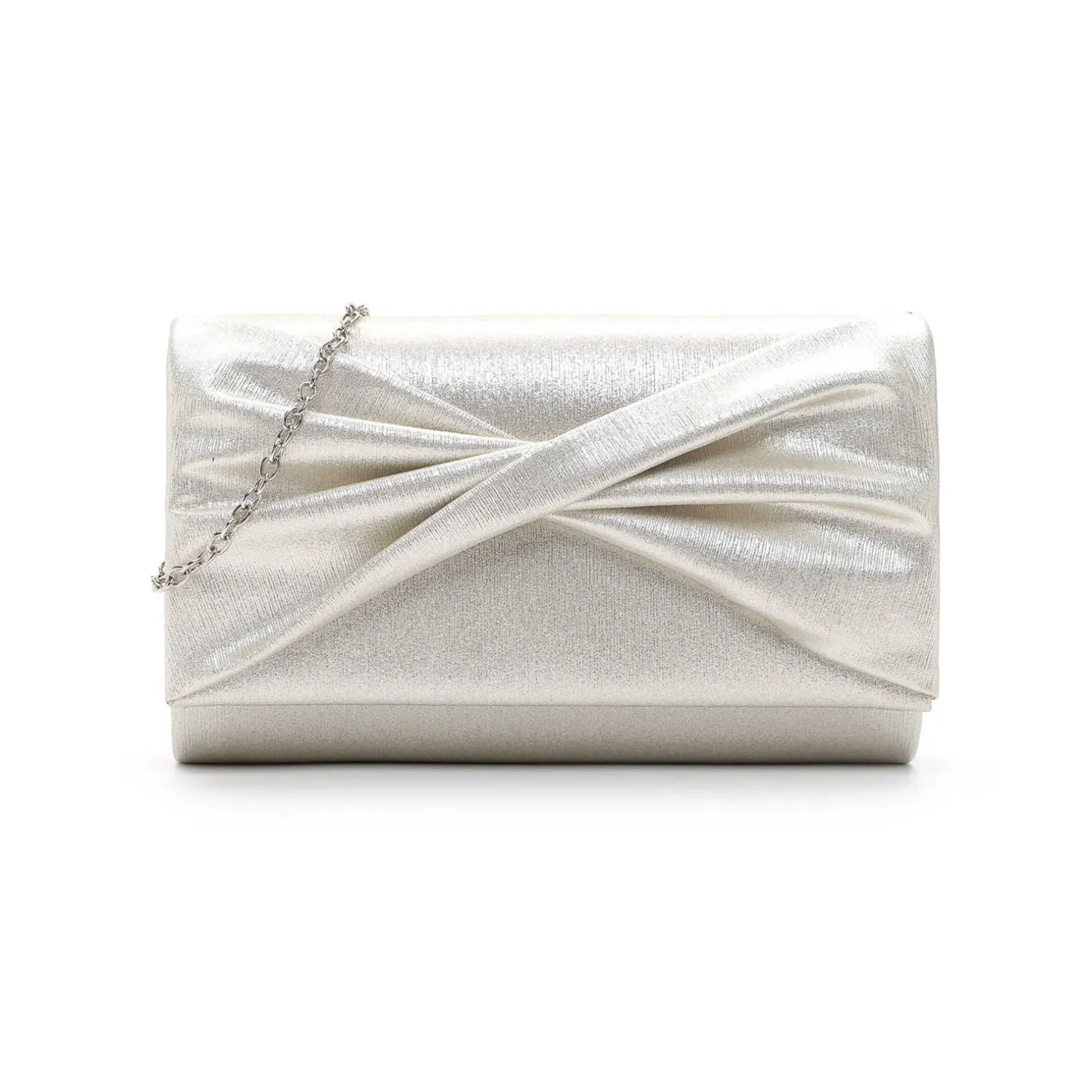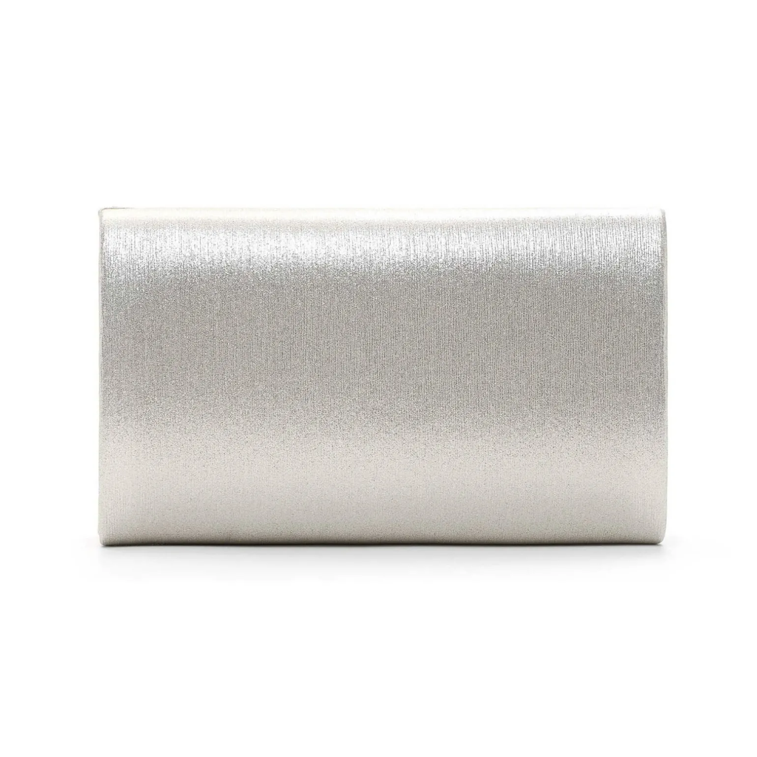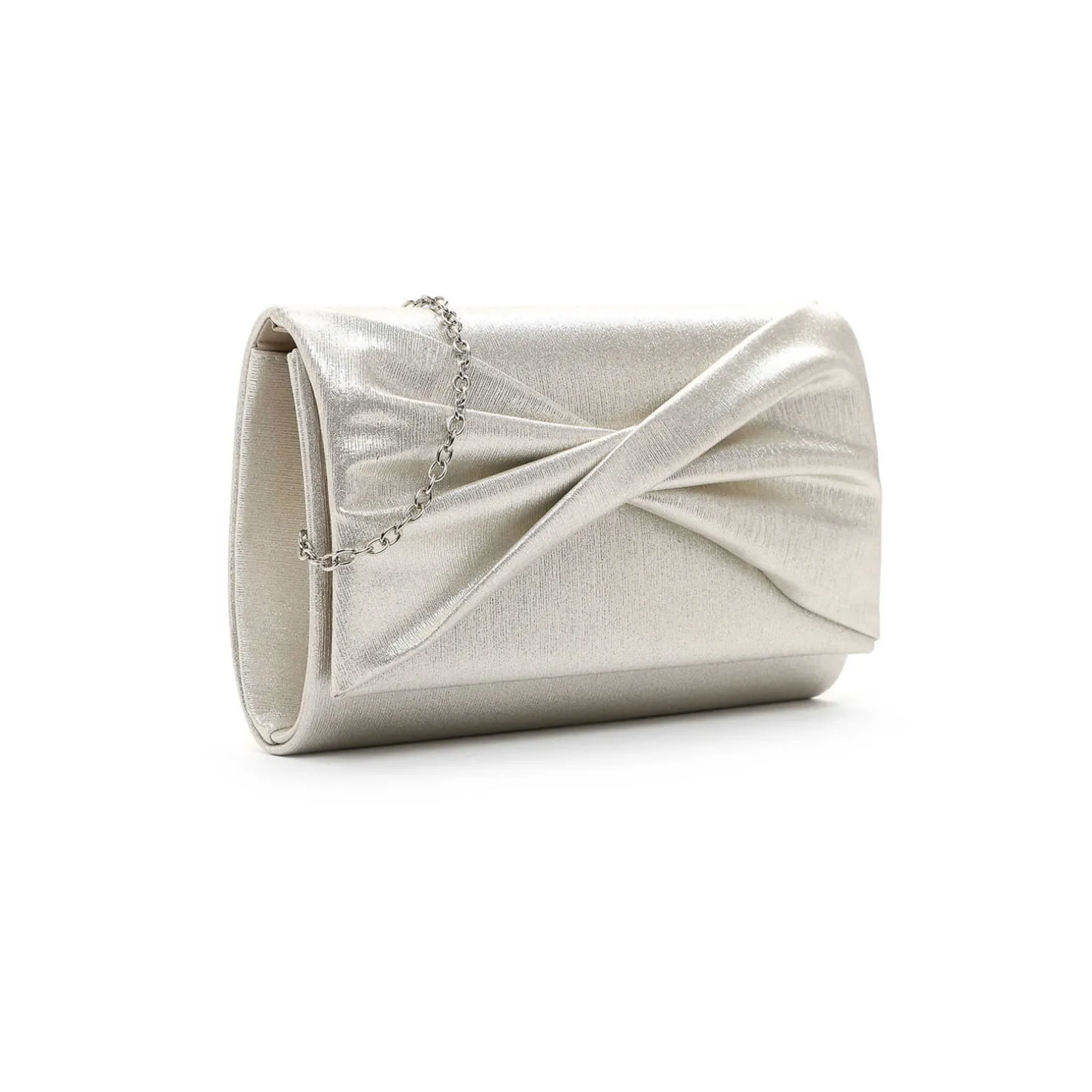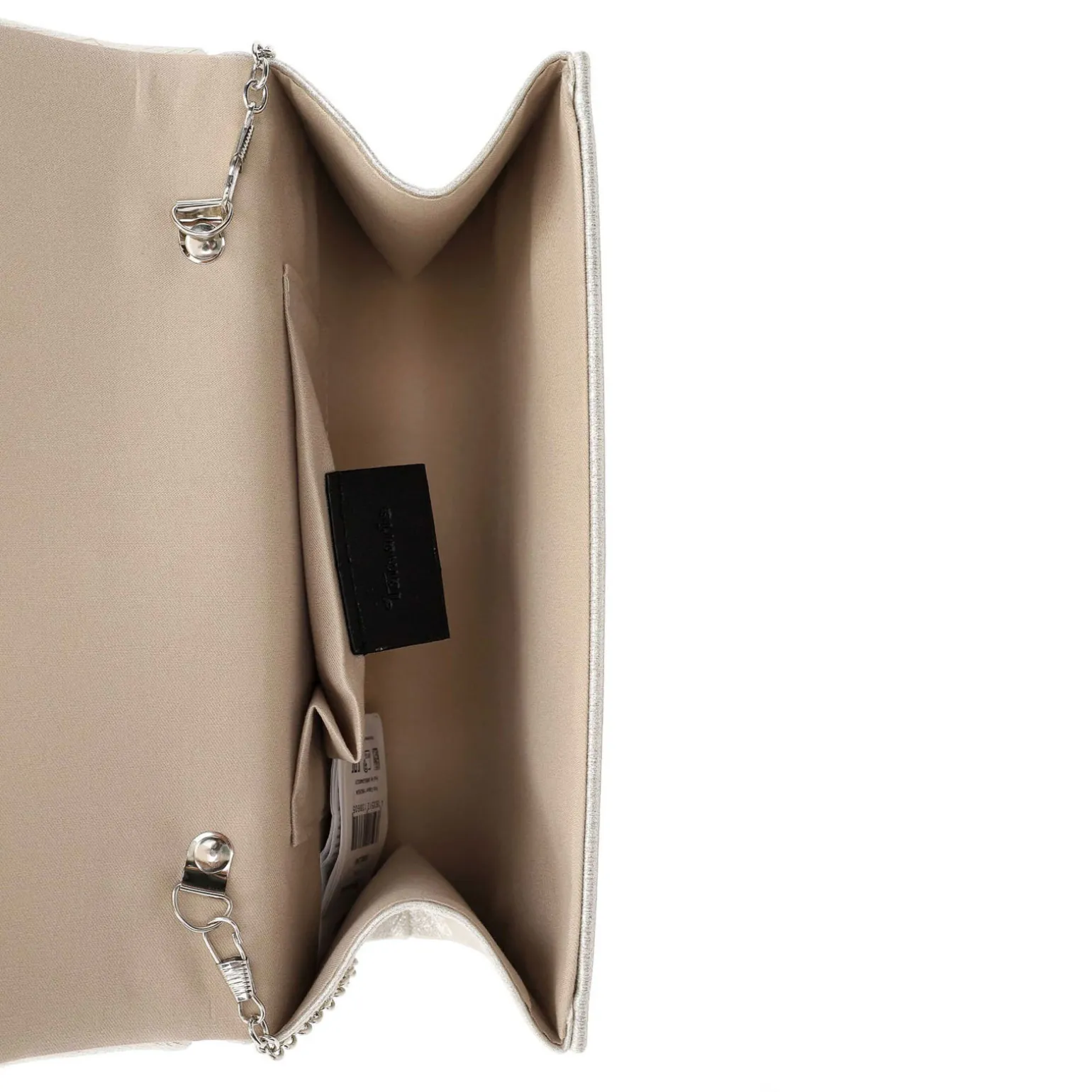 Sac À Main de la marque Tamaris de couleur beige doré. sac pochette clutch avec une bandoulière en chainette de 120 cm, une fermeture par bouton-pression magnétique, sac en matière métalisée