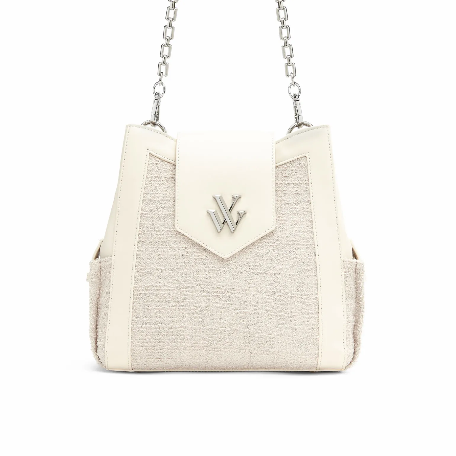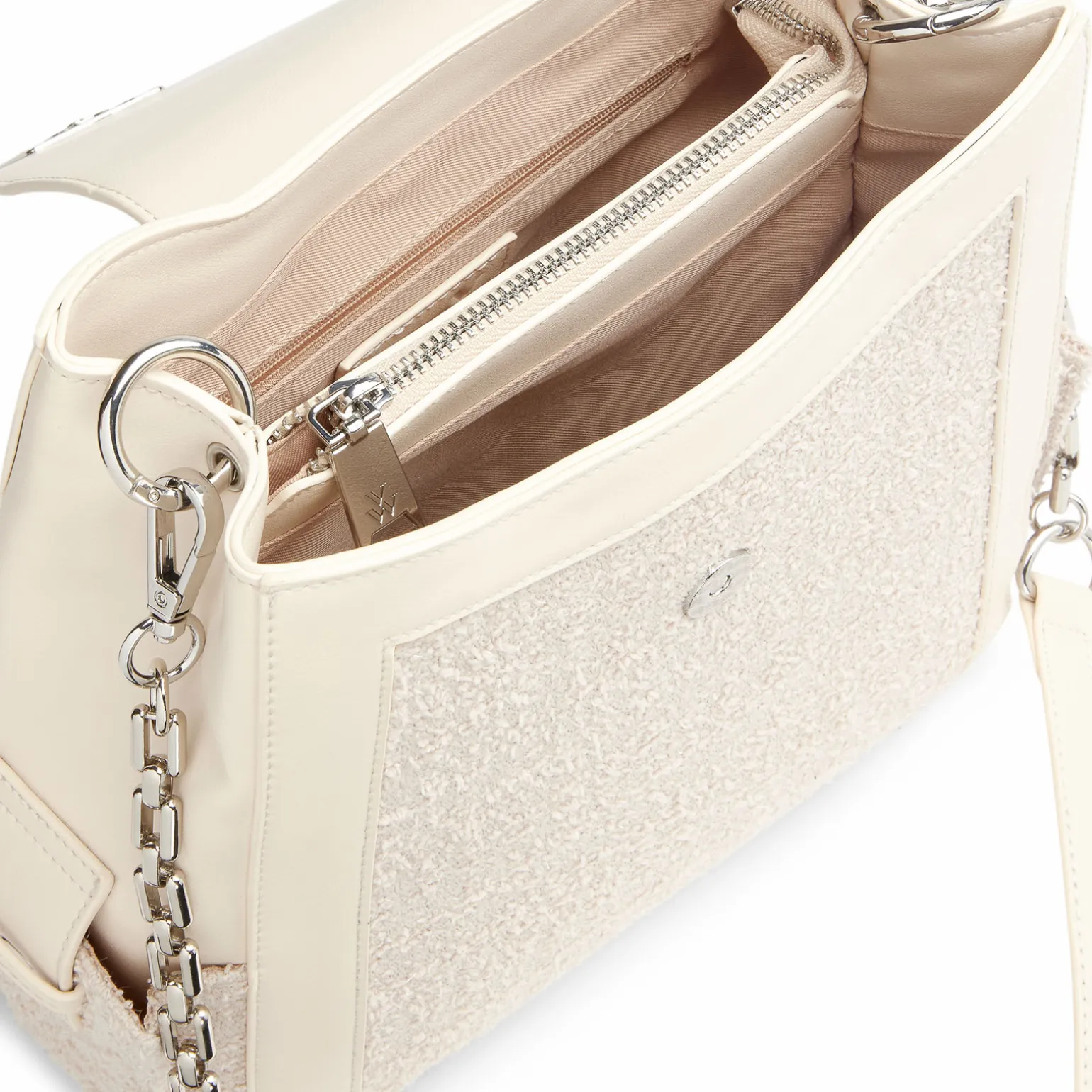 Sac À Main de la marque Vanessa Wu de couleur beige. Sac femme à bandoulières chic et élégant, mélange de similicuir et de textile pailleté, à l’intérieur une double poche, un zip central et 2 pochettes à rabat avec fermeture aimantée, insert du logo VW argentée.