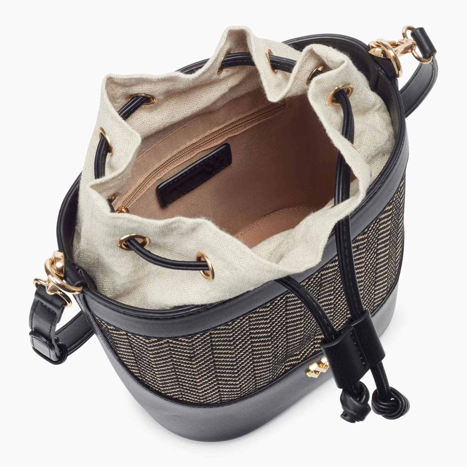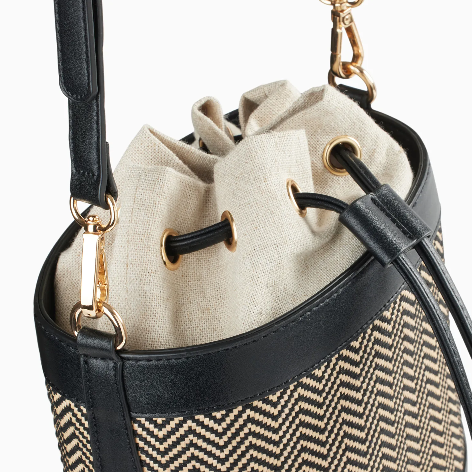 Sac À Main de la marque Vanessa Wu de couleur noir. Sac à main moderne style bourse, dessus toile grise ou beige et un simili noir ou marron, pieds de sac dorés, une fermeture par bouton magnétique et par un cordon en simili cuir, sac à mains de la nouvelle collection été 2024 de Vanessa Wu