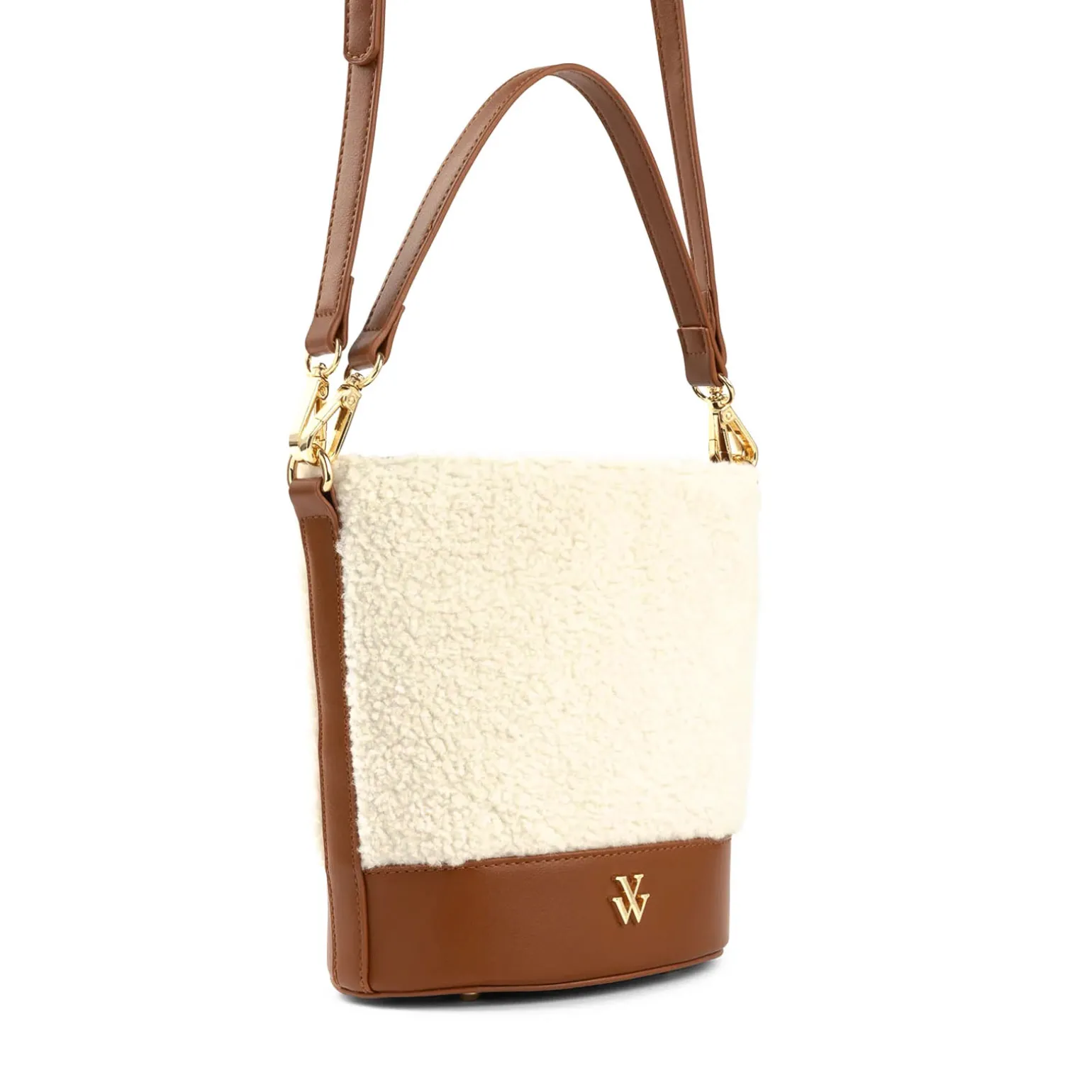 Sac À Main de la marque Vanessa Wu de couleur beige. Élégant et chic, ce sac à main en simili fourrure et simili cuir, une fermeture avec un bouton magnétique, deux poches à l’intérieur dont une à fermeture zippée, anse en simili cuir amovible, une bandoulière fine amovible en simili cuir noir, à boucles et mousquetons métal, sac à mains disponibles dans deux versions différentes pour cette nouvelle collection Vanessa Wu hiver 2023