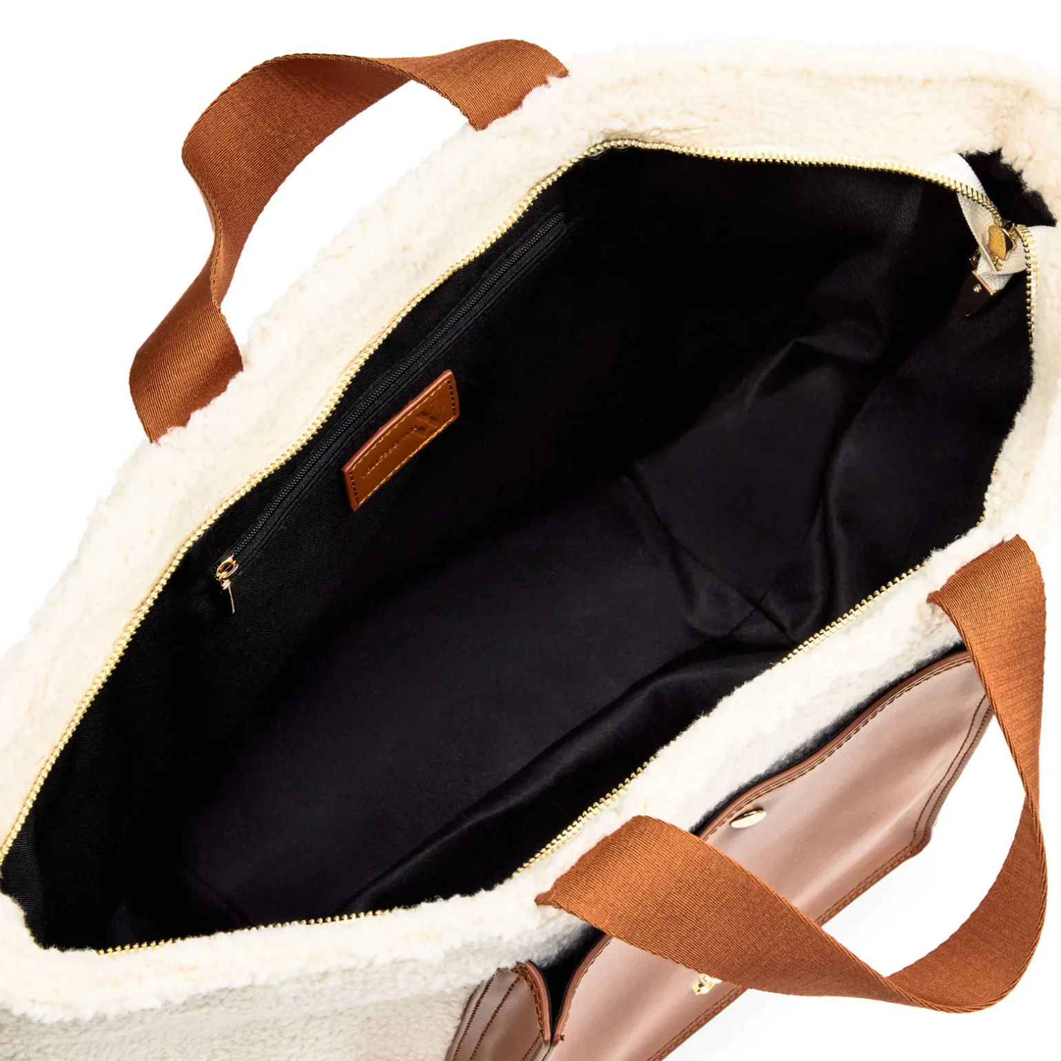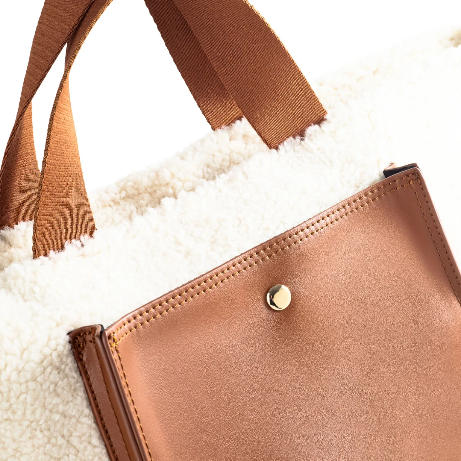 Sac À Main de la marque Vanessa Wu de couleur marron. Élégant grand sac à main style cabas, dessus en simili fourrure style lainage marié à un simili cuir, poche extérieure en similicuir avec fermeture à bouton magnétique, fermeture éclair dorée, anses en tissu, bandoulière amovible et réglable en tissu, boucles et mousquetons dorés, sac à mains de la nouvelle collection hiver 2024 de Vanessa Wu