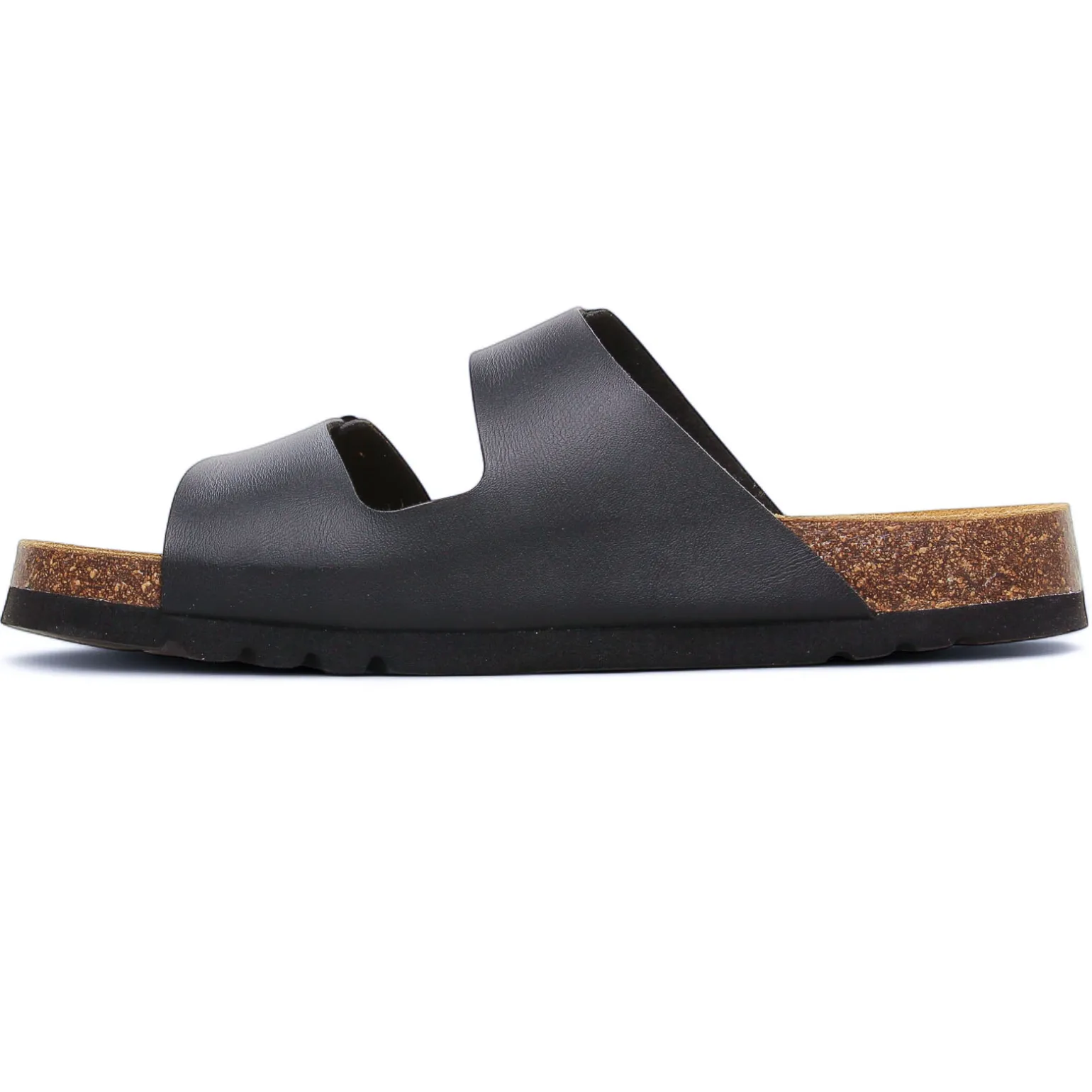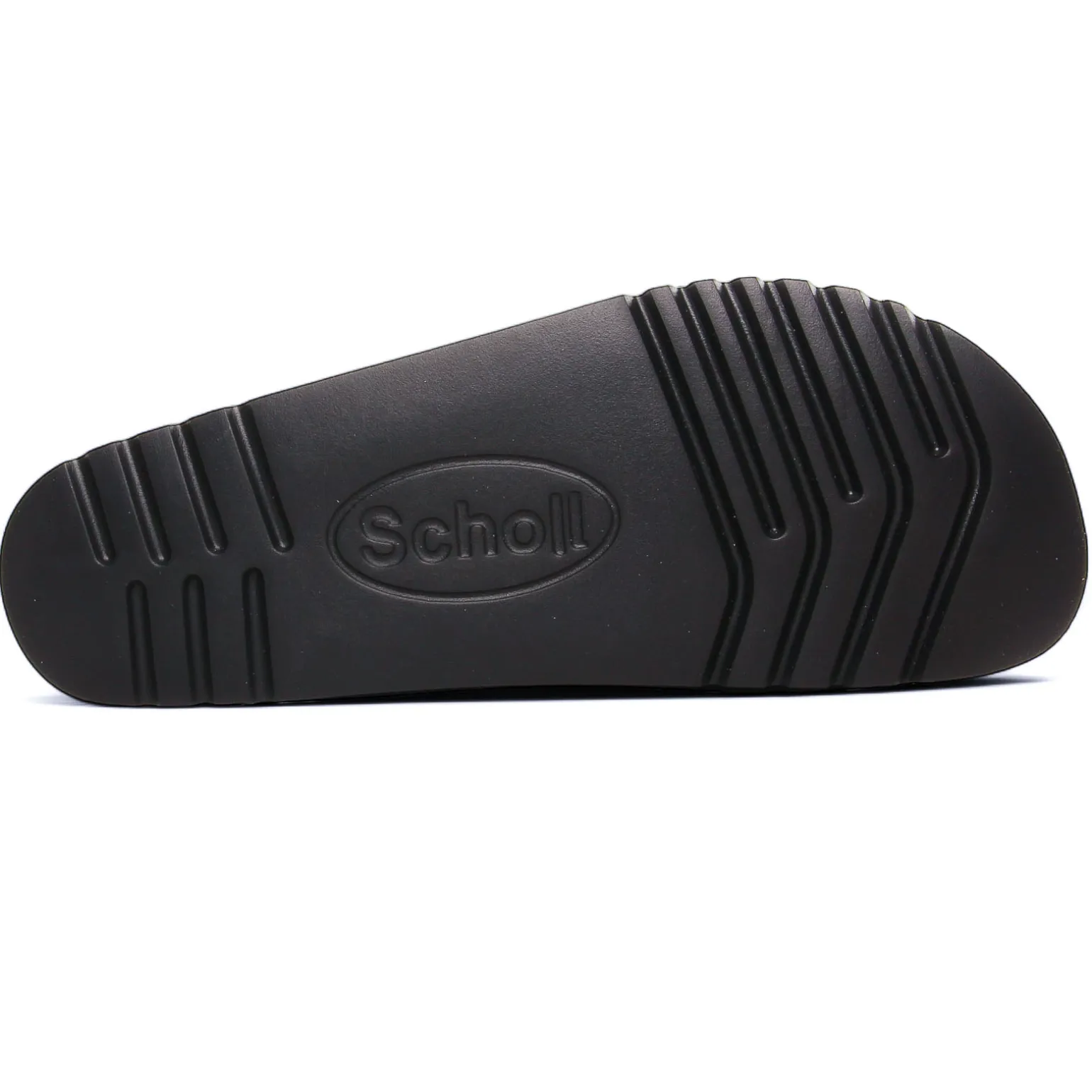 Sandales de la marque Scholl de couleur noir. Mules simili cuir très confortables sur une semelle noire souple et gomme élastomère, deux brides réglables sur le coup de pied, un must have dans sa garde robe estivale