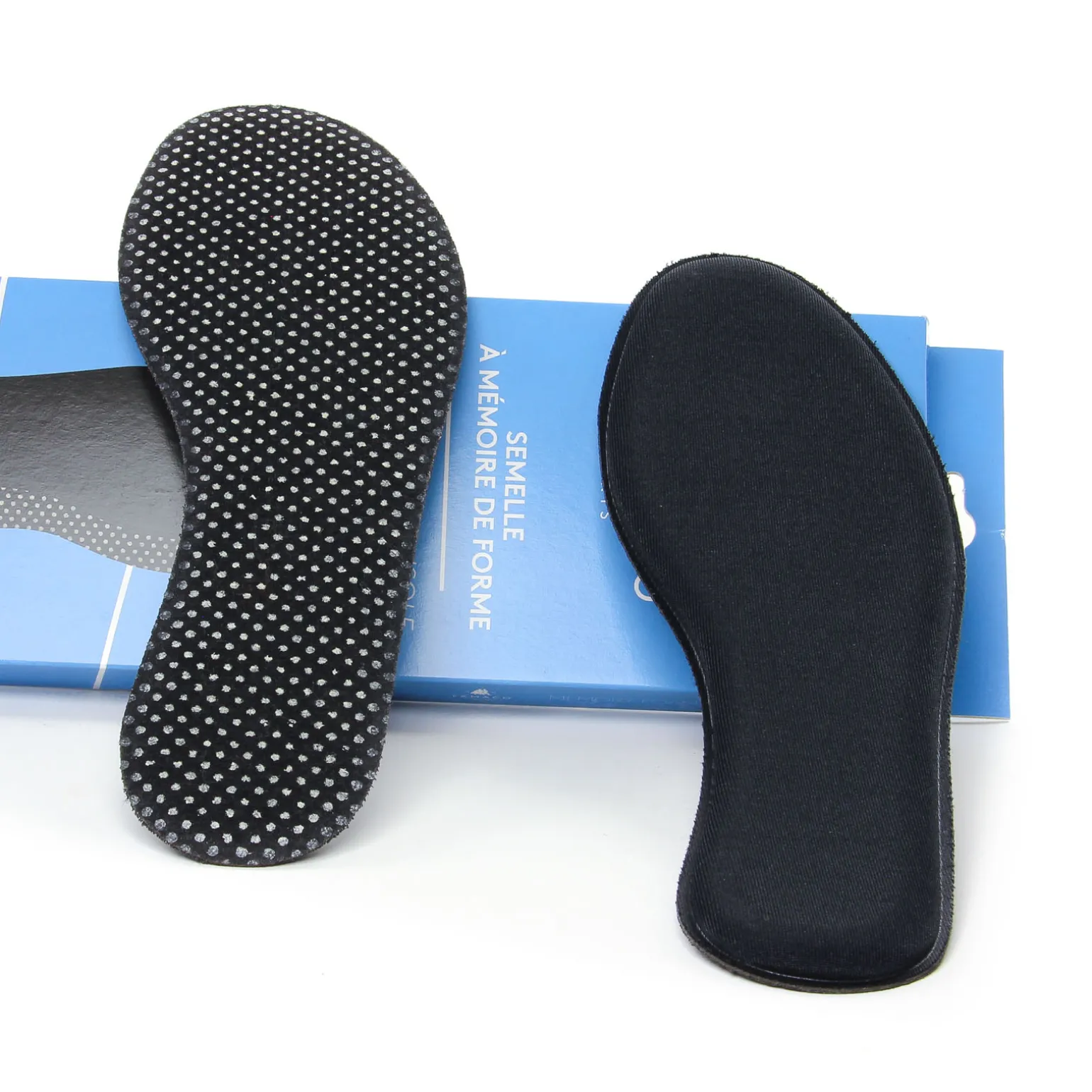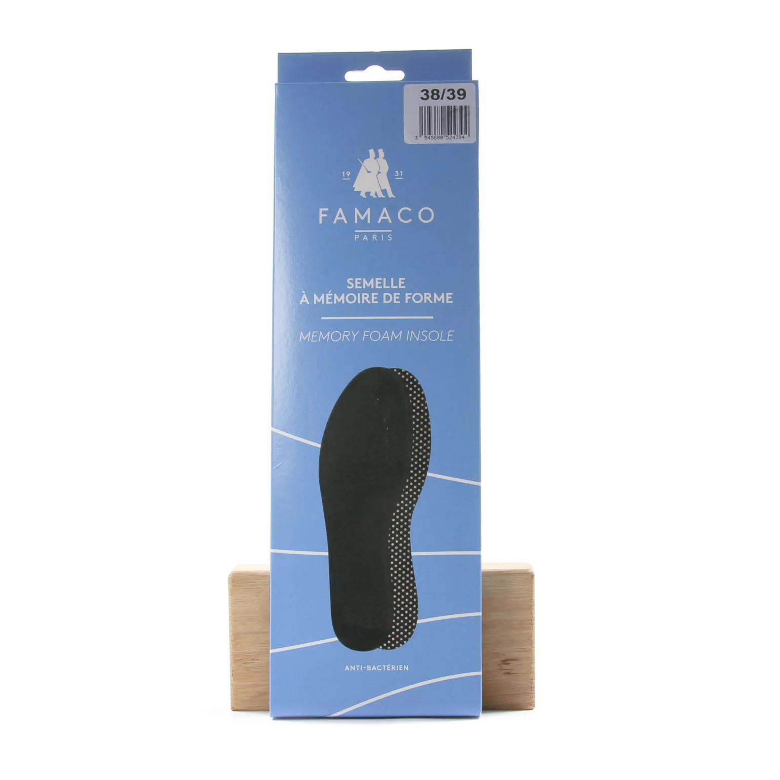 Semelles de la marque Famaco de couleur noir. Voici une semelle à mémoire de forme de couleur noir pour un confort de marche accru dû à l’adaptation immédiate à la forme de votre pied et à une absorption des chocs supplémentaire