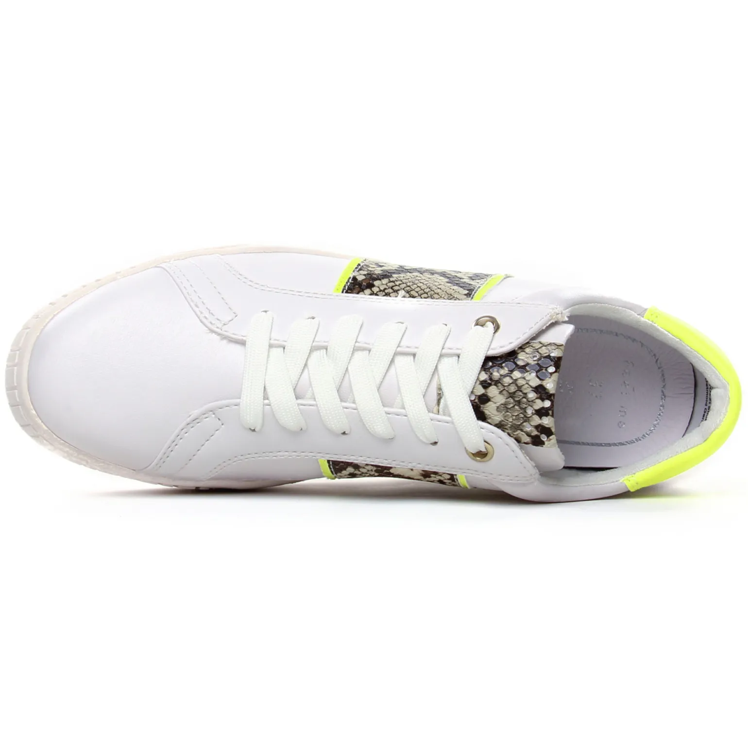 Tennis de la marque Marco Tozzi de couleur blanc jaune. Superbes tennis baskets tendances ultra-chics signées par la marque allemande Marco Tozzi nouvelle collection printemps été 2020, super confortables avec sa première Feel Me qui est amovible, une tige travaillée de manière originale pour une touche fashion chic très réussi à un prix hyper hyper doux !