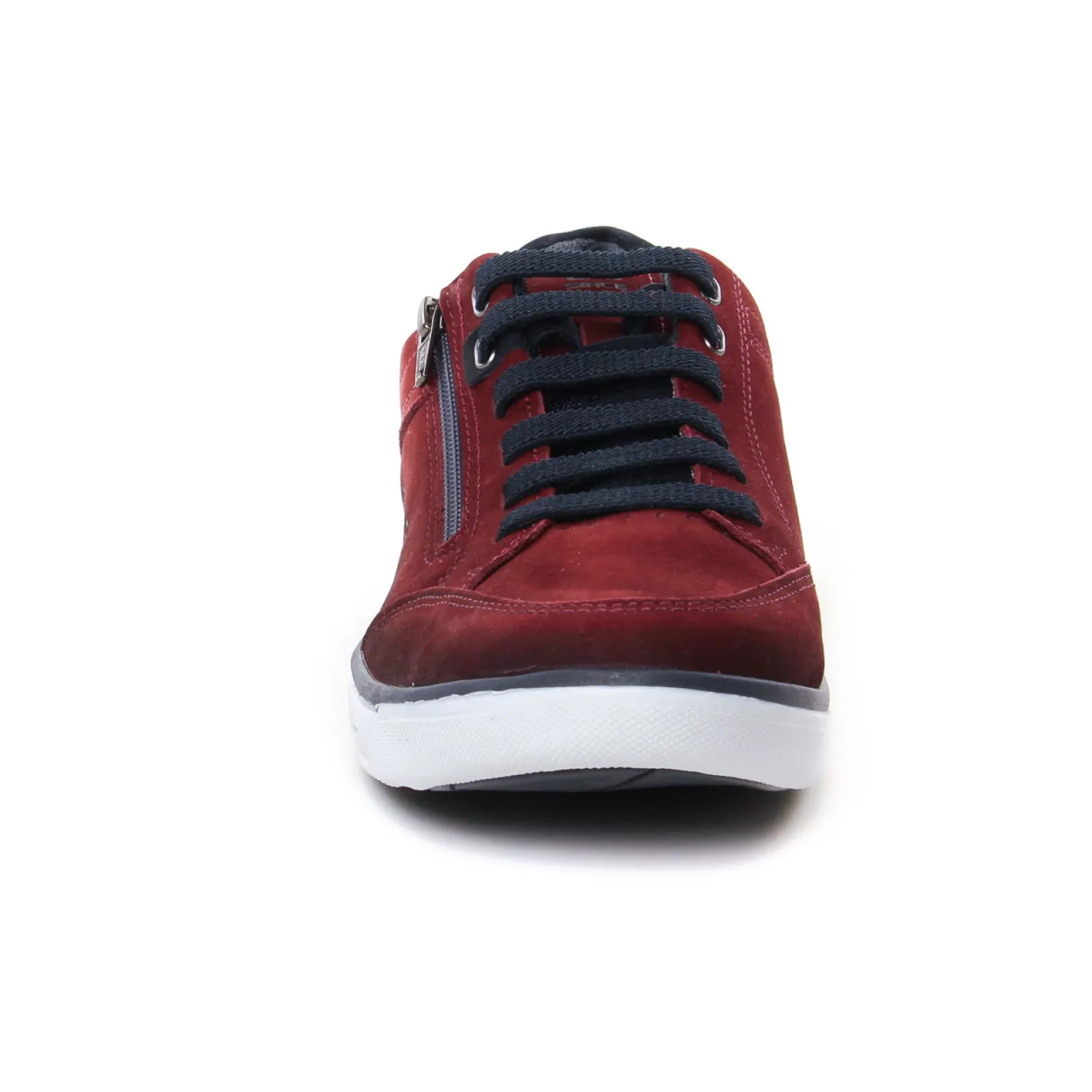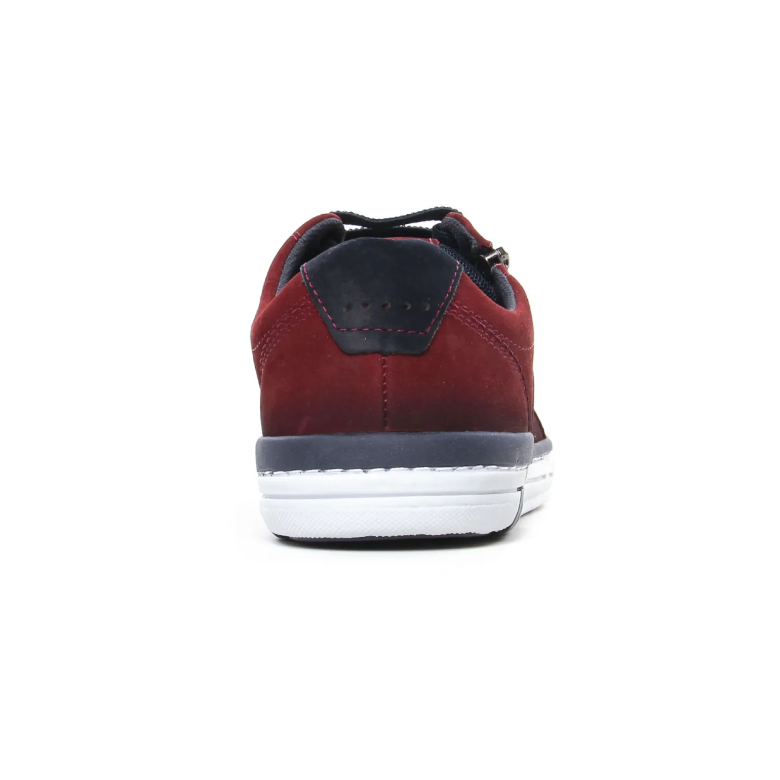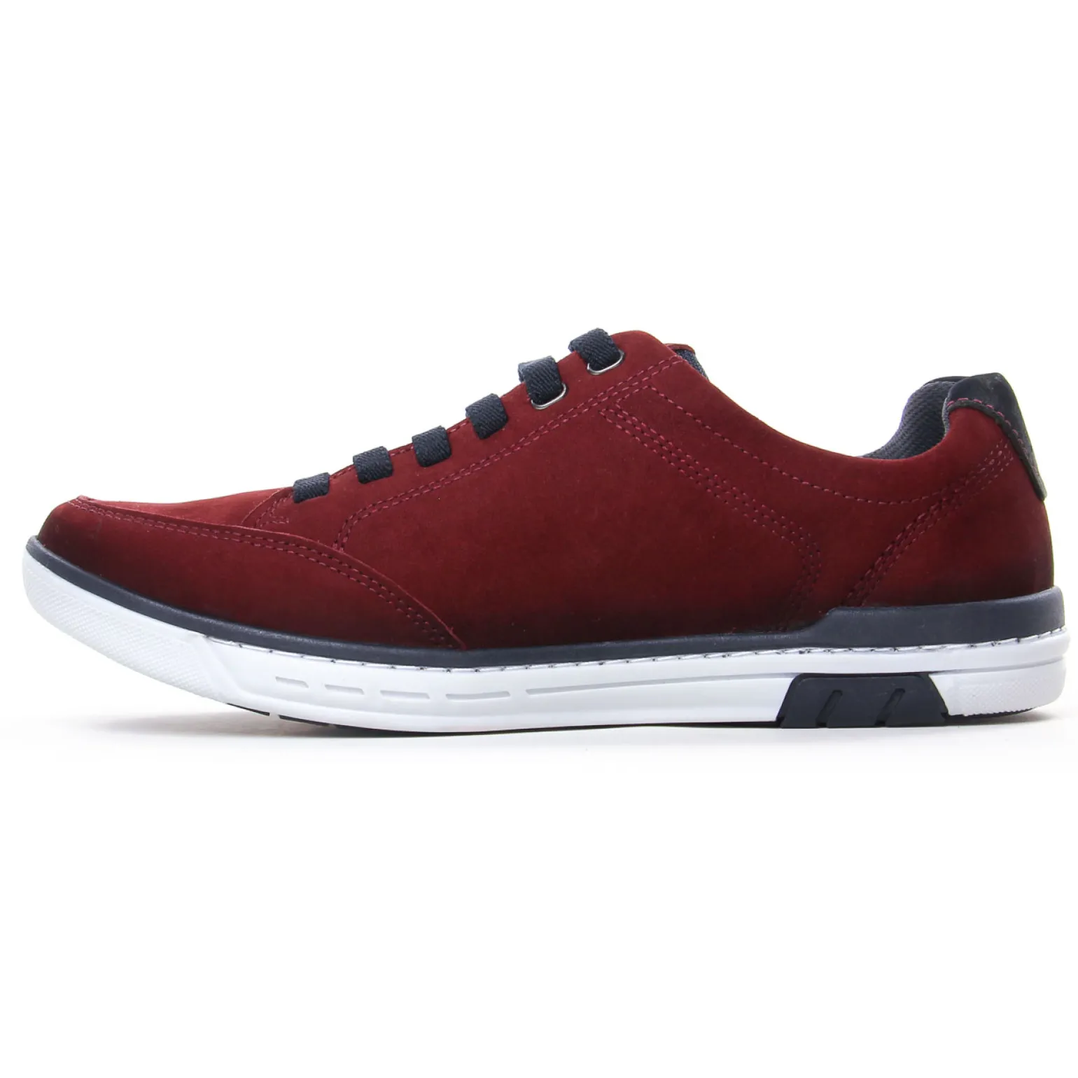 Tennis de la marque Pegada de couleur bordeaux. Belles tennis en cuir suédé confortables, parfaites pour une tenue élégante et décontractée, tennis disponibles en rouge carmin, doublure textile, semelle blanche souple, nouvelle collection Pegada Automne 2022