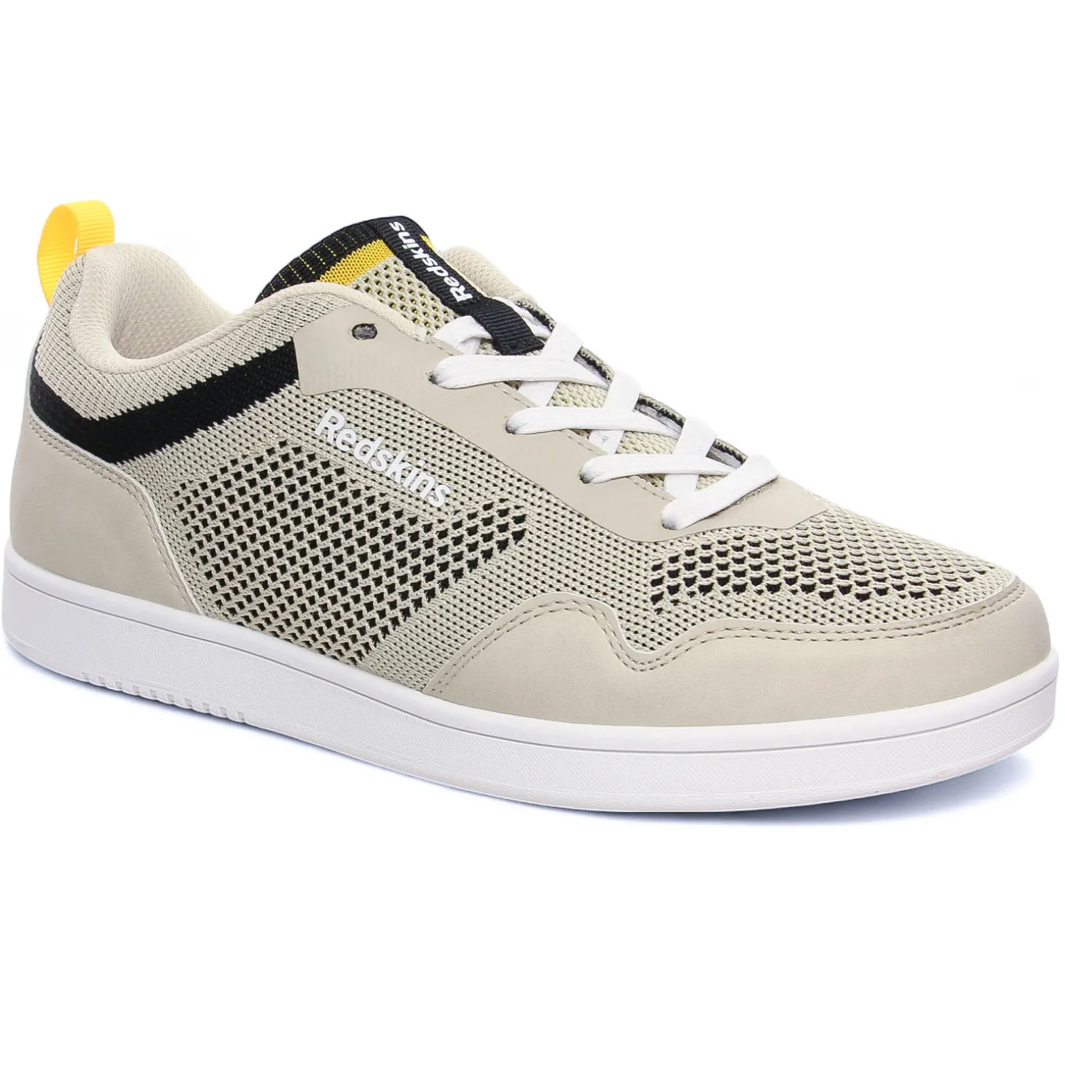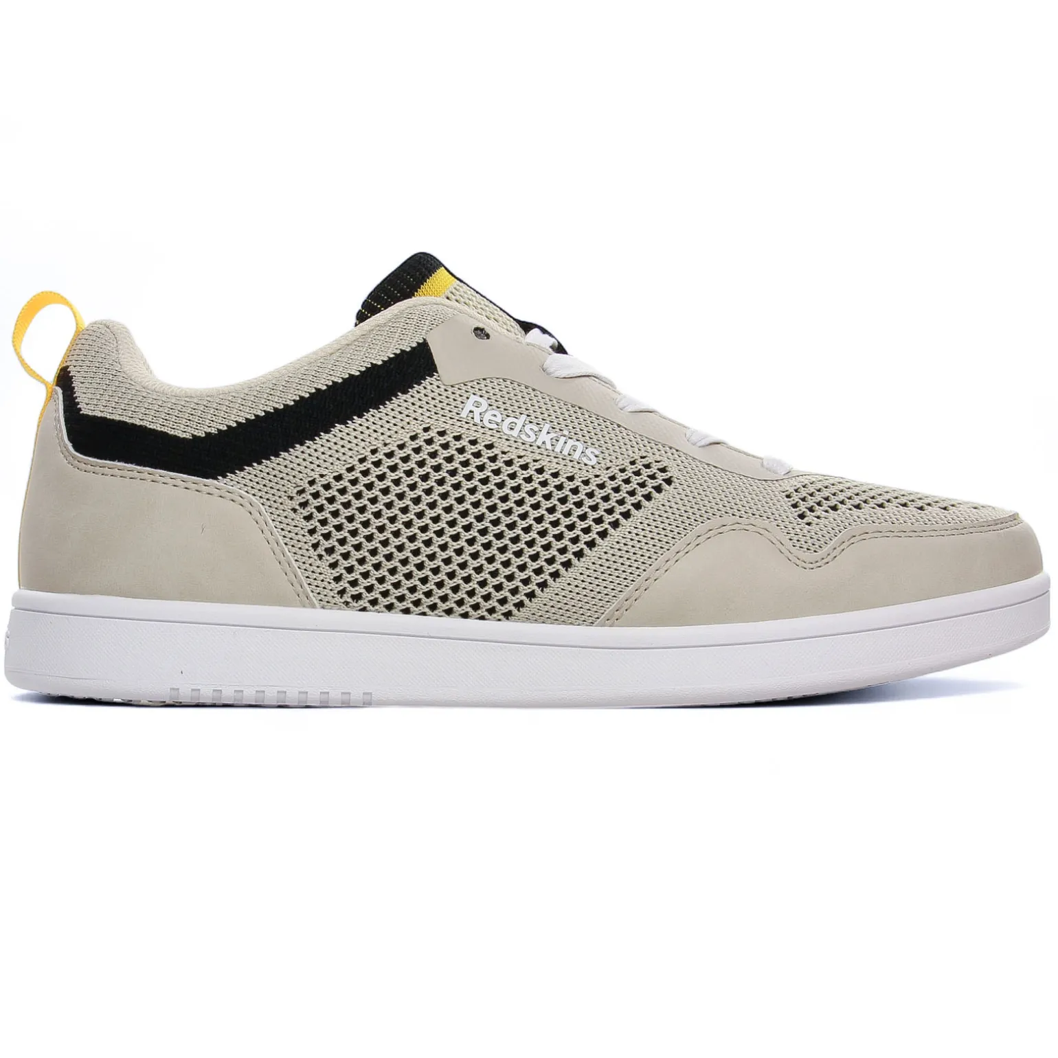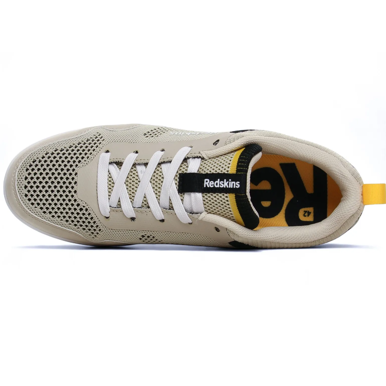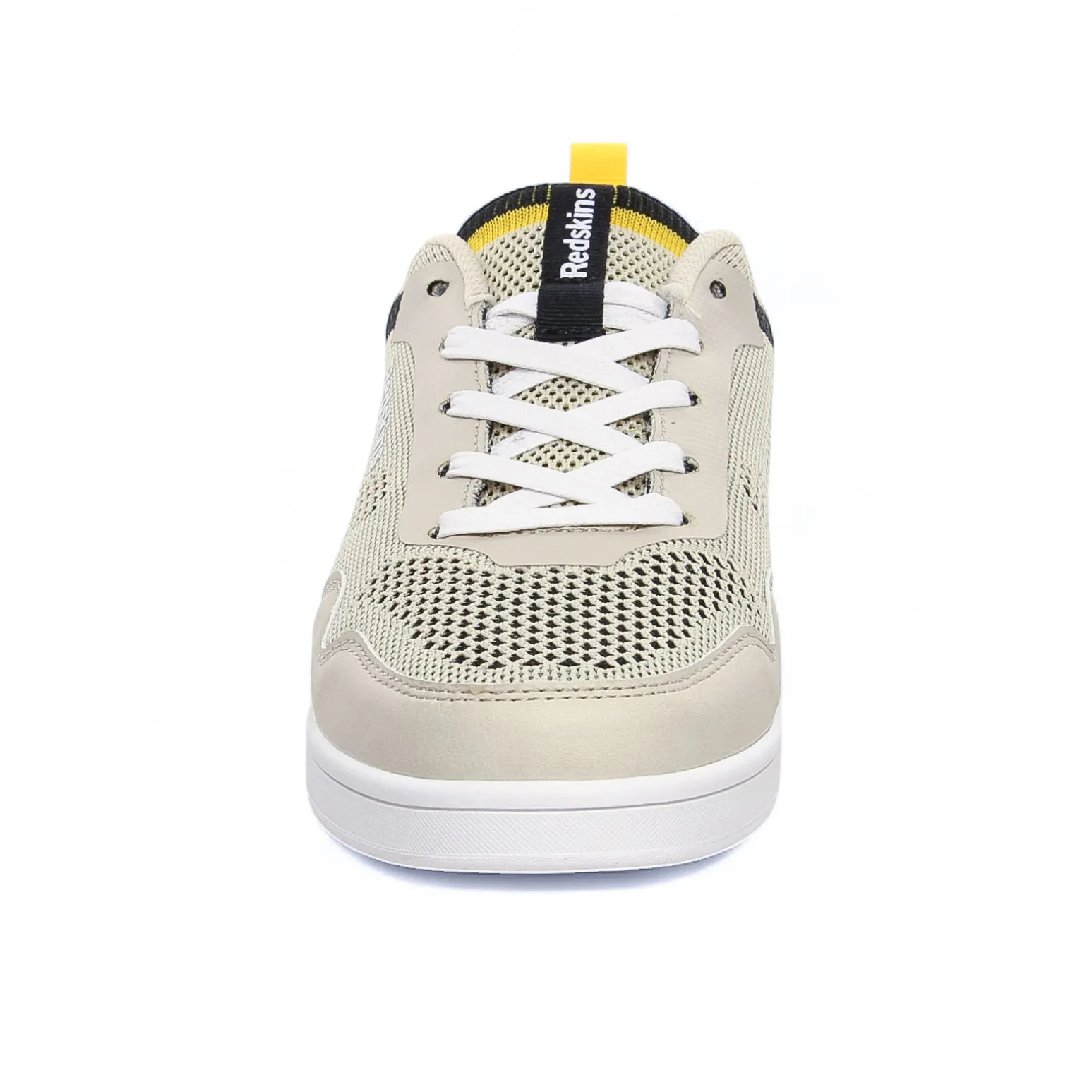 Tennis de la marque Redskins de couleur beige. Jolies tennis toile avec un effet maille, disponible en couleurs beige ou vert kaki, première fine en textile et amovible, semelle blanche à plateau 2 cm Flex confortable
