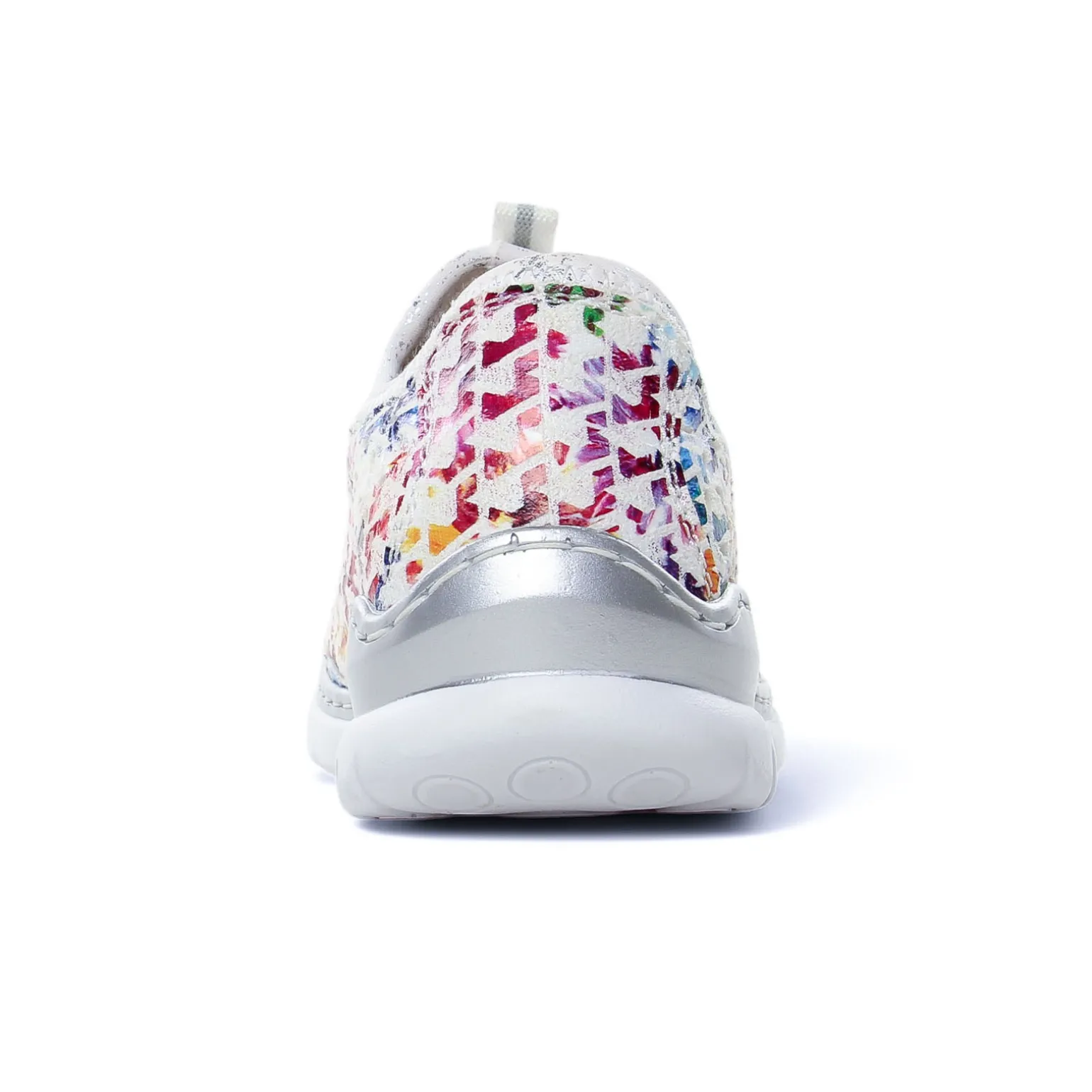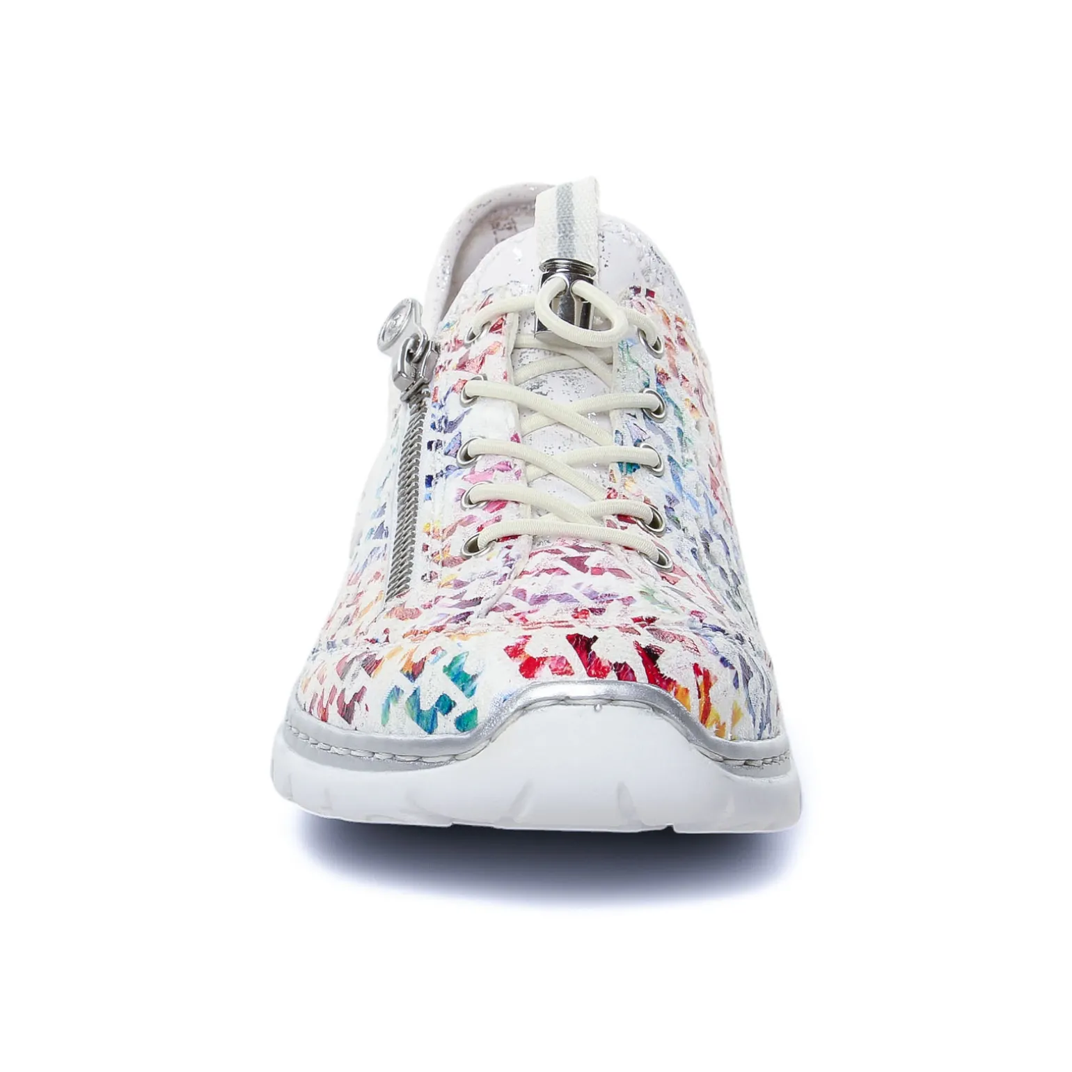 Tennis de la marque Rieker de couleur multicolore. Tennis légère et confortable multicolore et ajourée lacets élastiqués pour un enfilage plus pratique, première à mémoire de forme confortable, semelle blanche et grise.