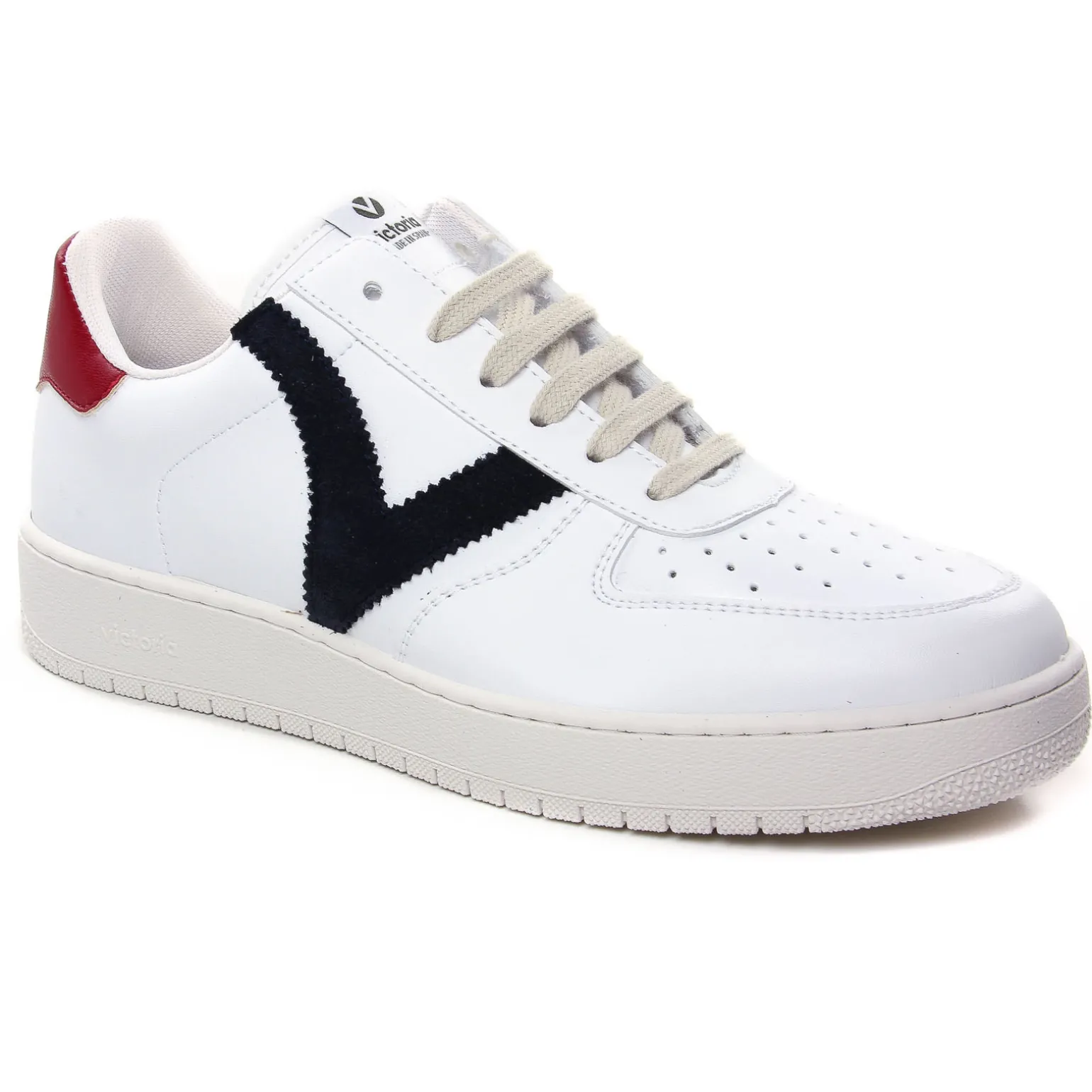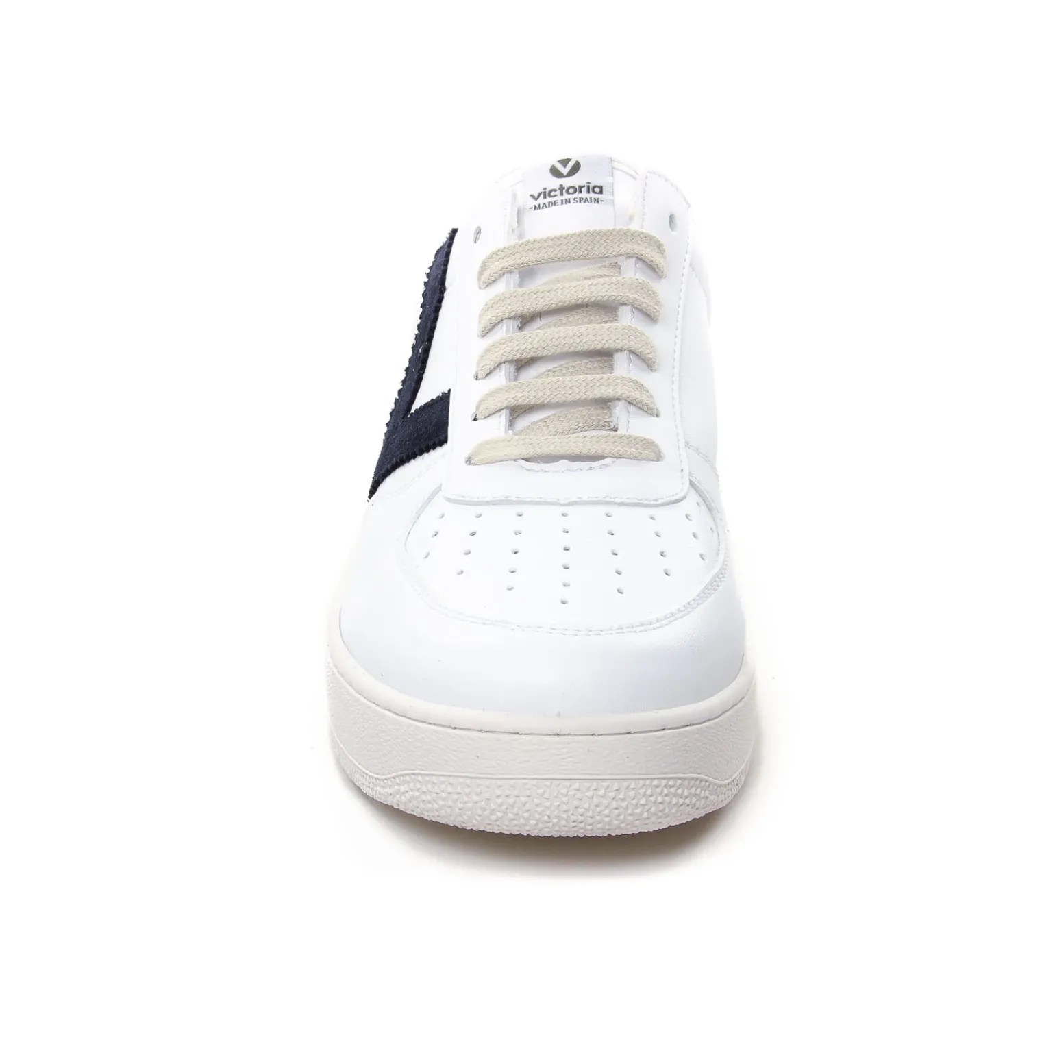 Tennis de la marque Victoria de couleur blanc marine. Tennis blanche en cuir signées par la célèbre marque de chaussures espagnole Victoria, tennis hyper tendances, la mode au juste prix, tige blanc cassé avec le logo en velours et haut du contrefort texturé : un must have ! Un best de chez Victoria qui sera présent pour cette nouvelle collection printemps 2023.